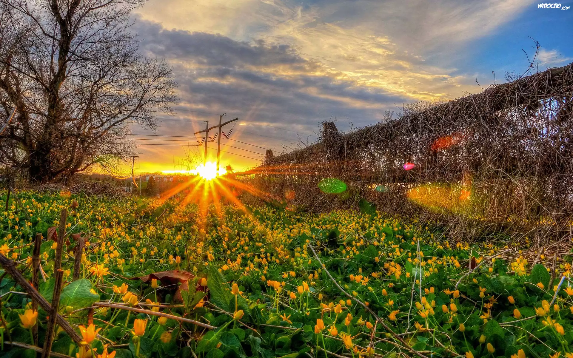 Zdjęcia, Pole, Ogrodzenie, Zachód słońca
