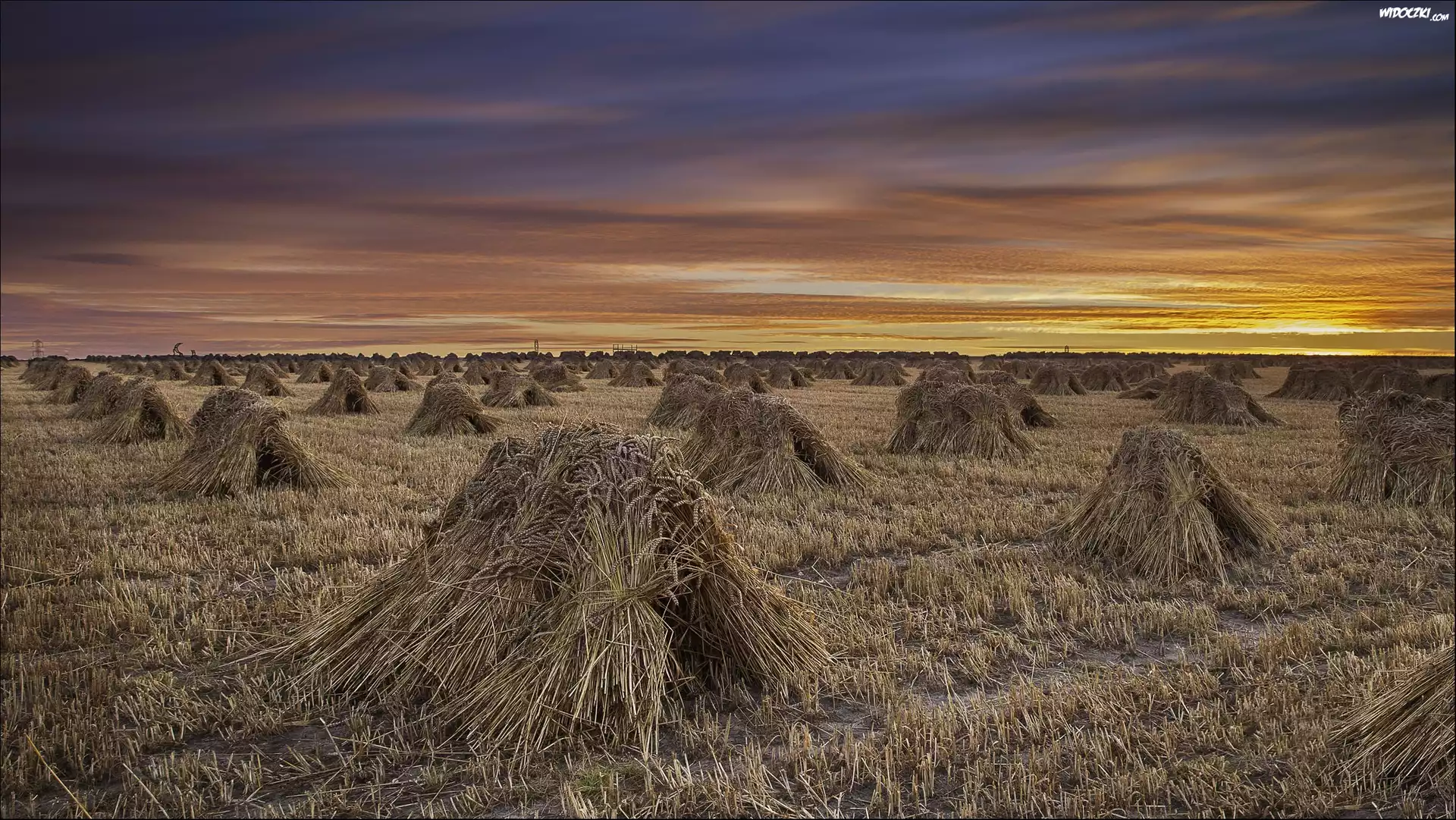 Zdjęcia, Pole, Snopy, Zachód, Słońca