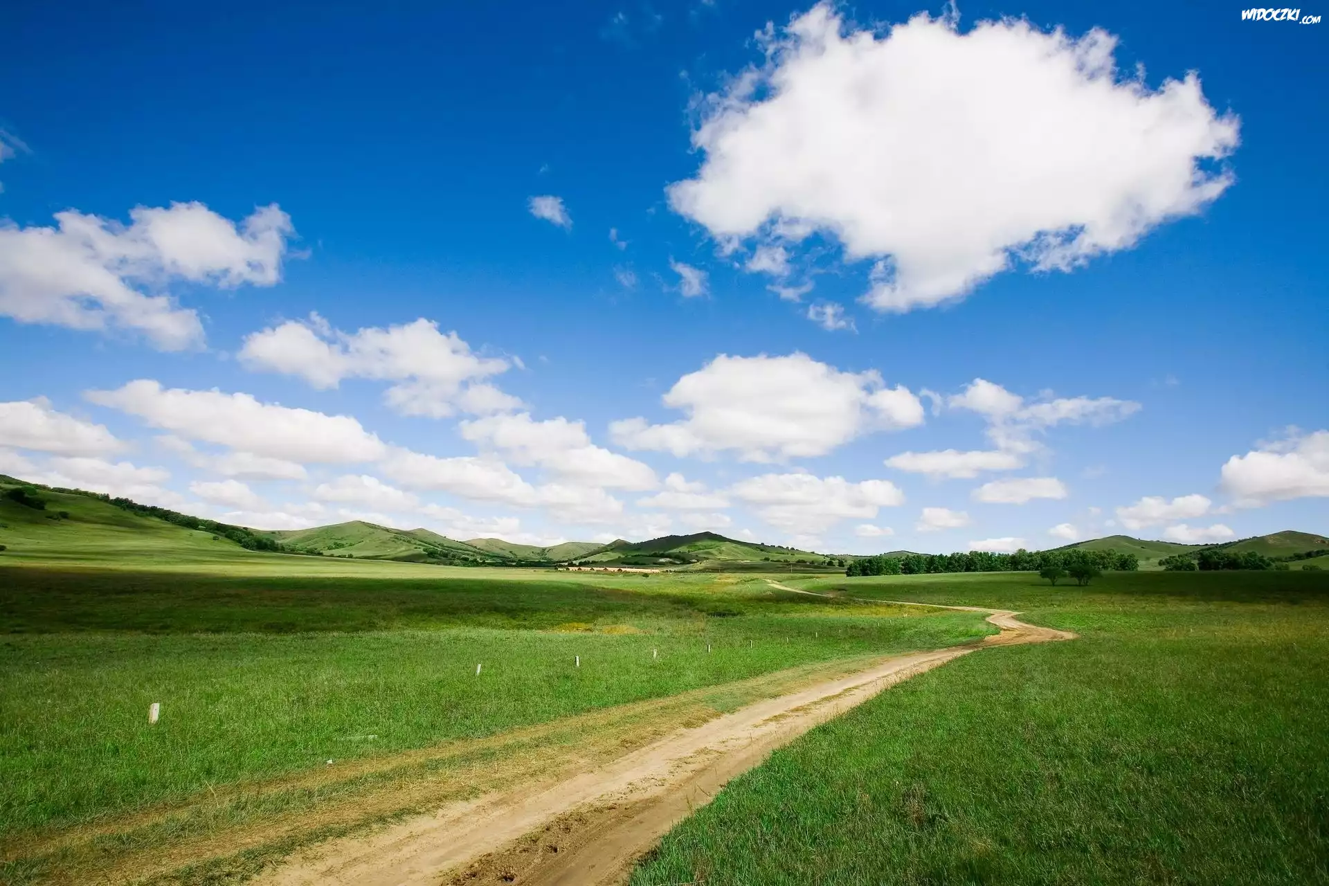 Zdjęcia, Polna, Droga, Łąka, Niebo