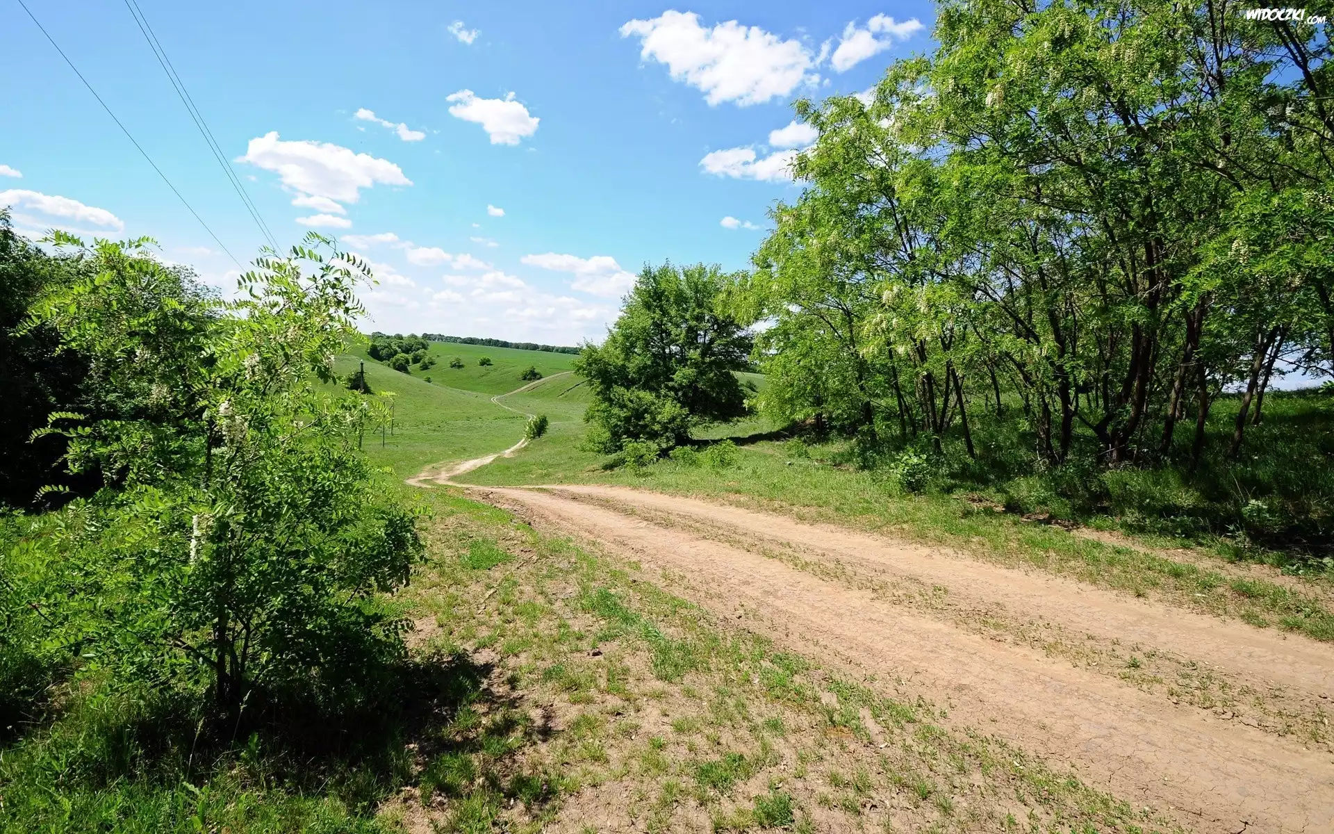 Zdjęcia, Polna, Droga, Łąki, Drzewa