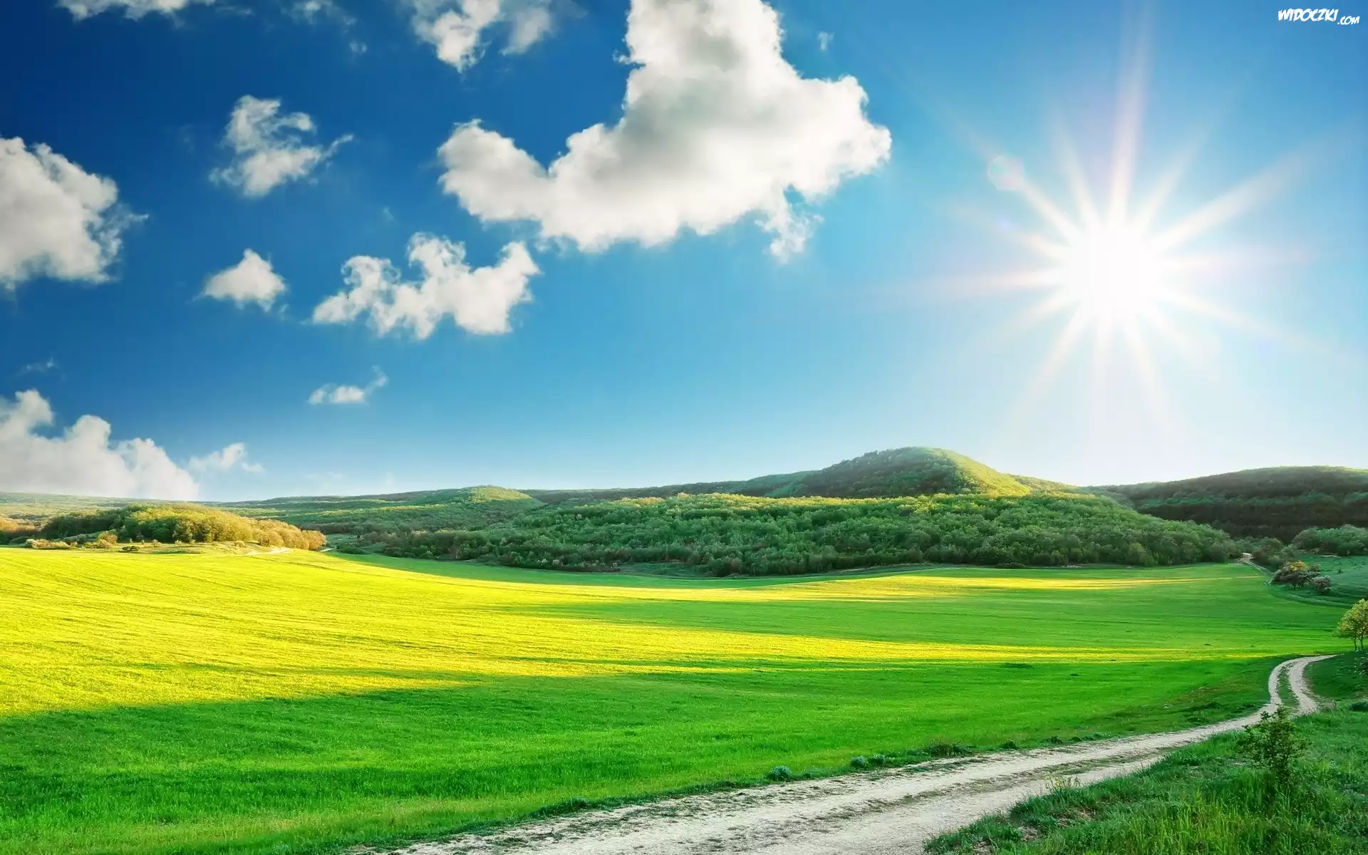 Zdjęcia, Łąka, Niebo, Słońce, Polna, Droga