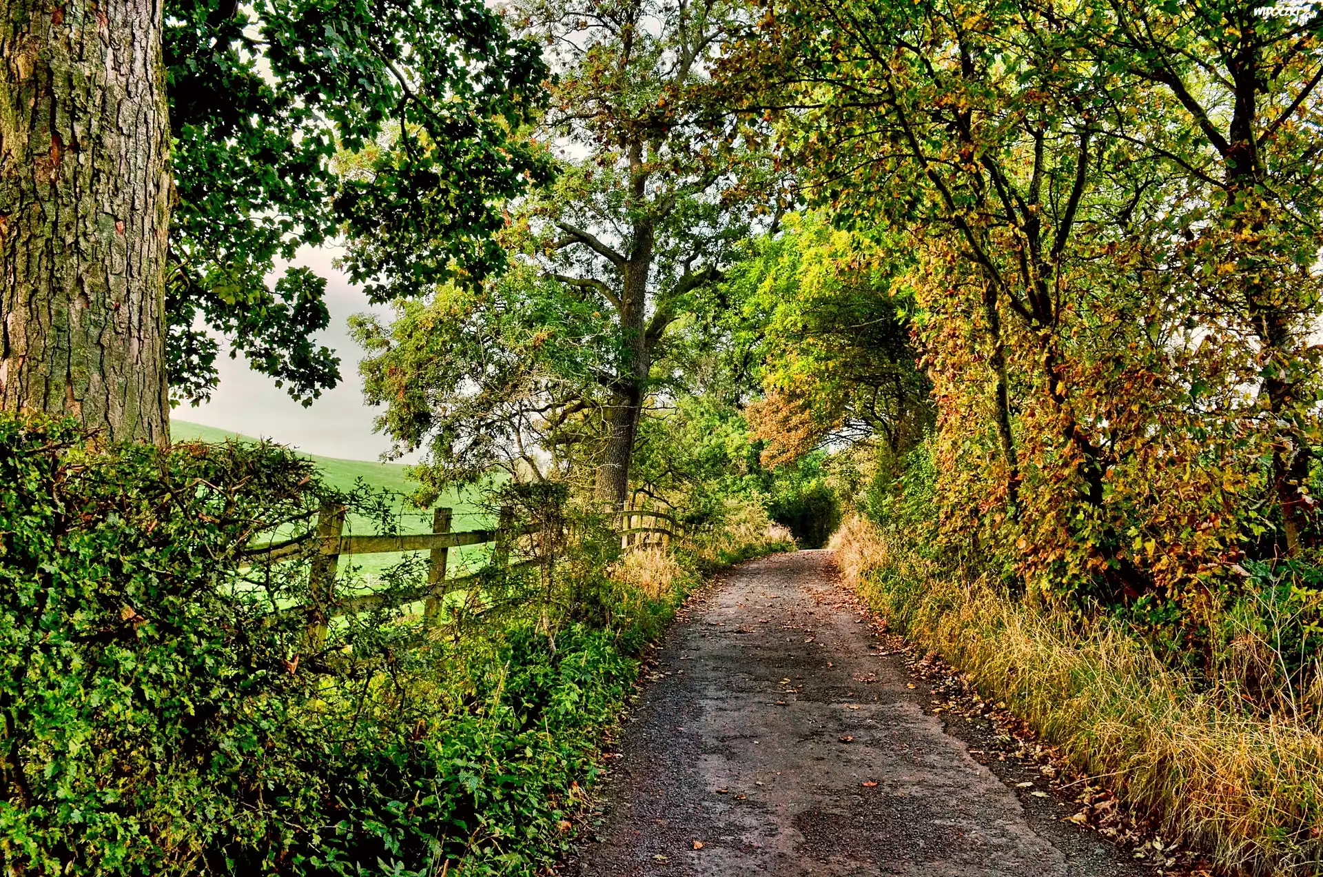 Polna, Droga, Drzewa, Ogrodzenie, Jesień