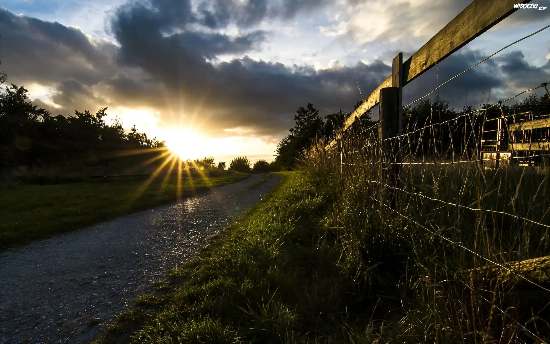 Zdjęcia, Polna, Droga, Ogrodzenie, Wschód Słońca
