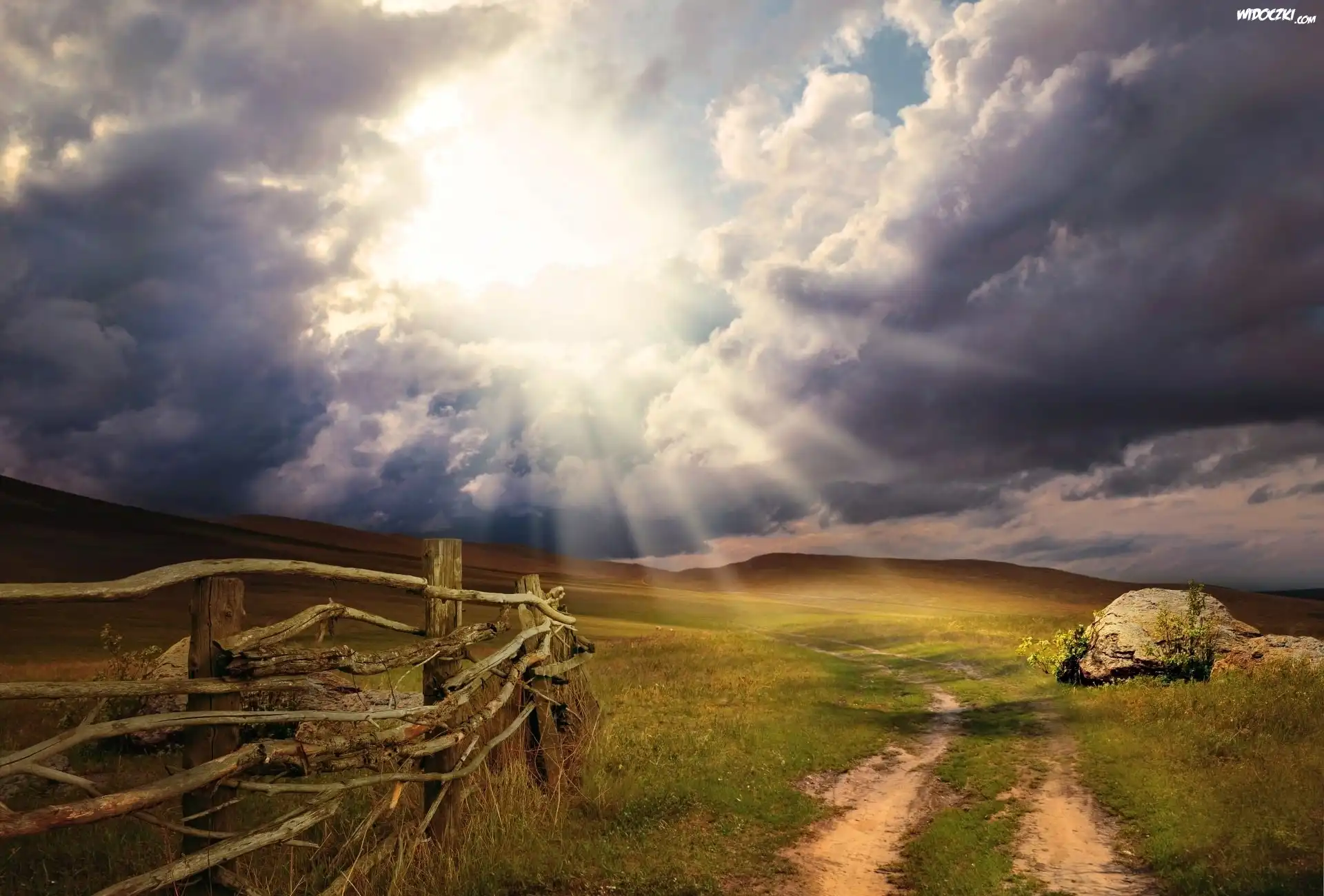Zdjęcia, Polna Droga, Płot, Wschód Słońca