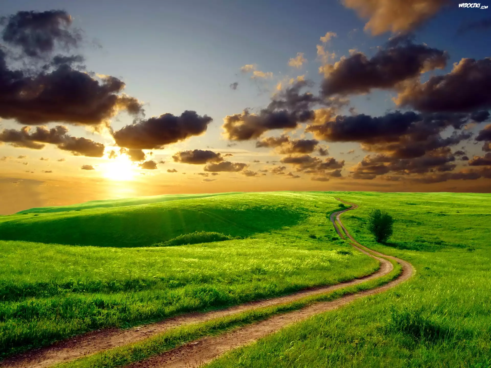 Polna, Droga, Chmury, Zachodzące, Słońce
