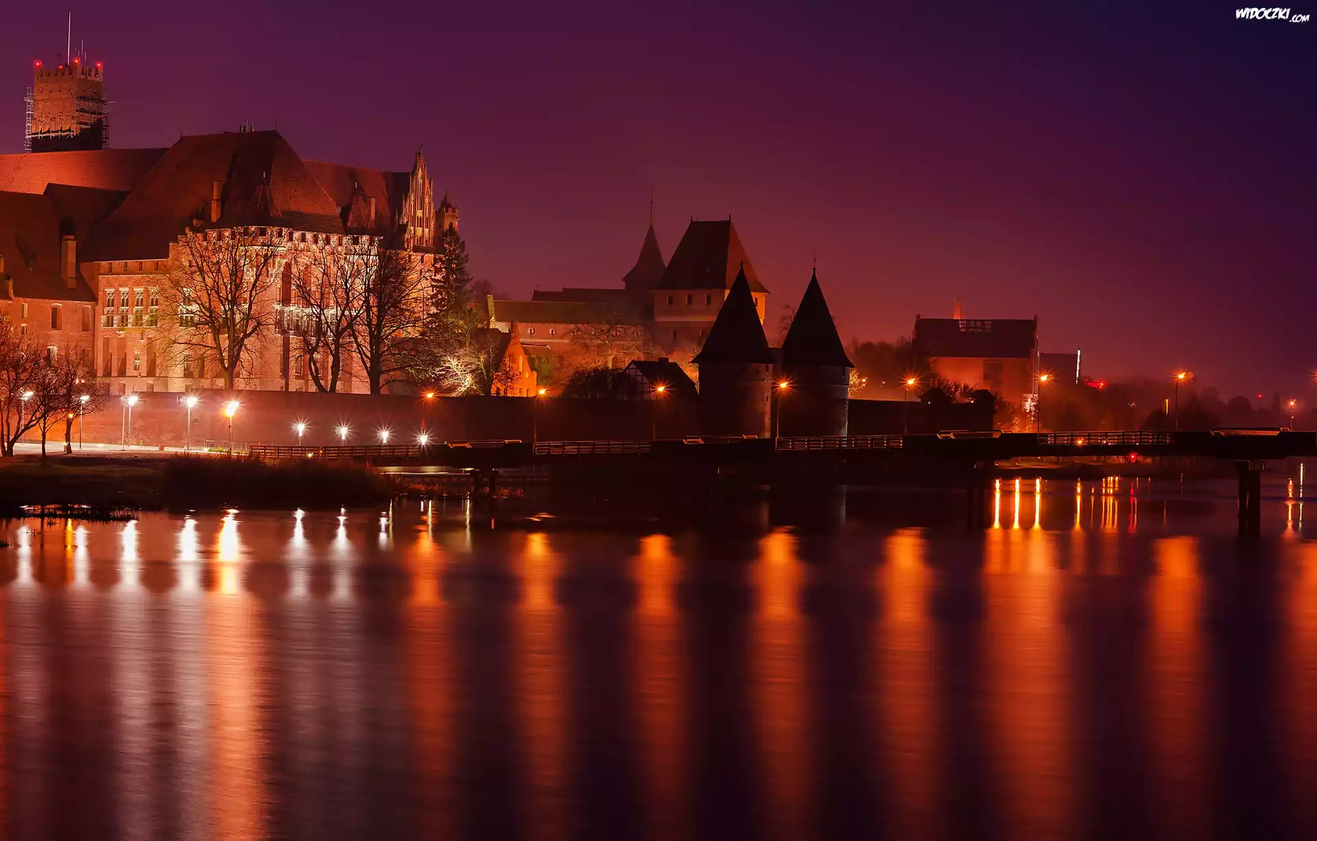 Zdj臋cia, Polska, Malbork, Rzeka Nogat, Zamek, Noc