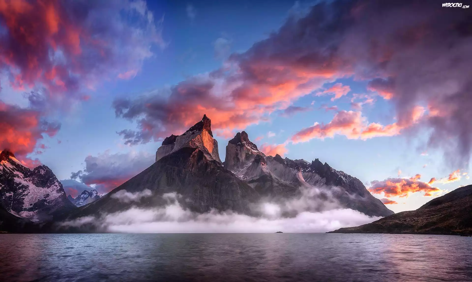 Zdjęcia, Ameryka południowa, Patagonia, Jezioro, Góry, Różowe, Obłoki