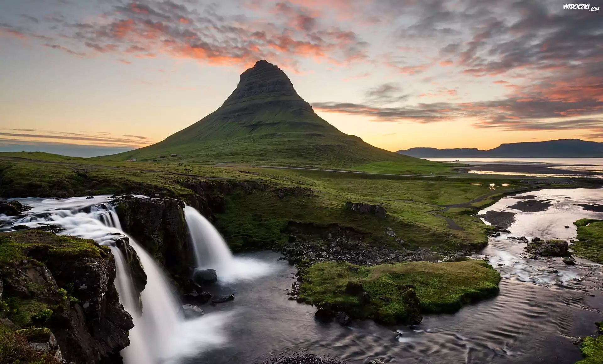 Zdjęcia, Islandia, Półwysep Snaefellsnes, Góra Kirkjufell, Wodospad Kirkjufellsfoss, Chmury
