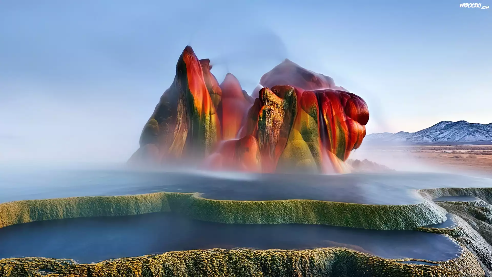 Zdjęcia, Pomarańczowa, Skała, Gejzer, Kaskada, Mgła