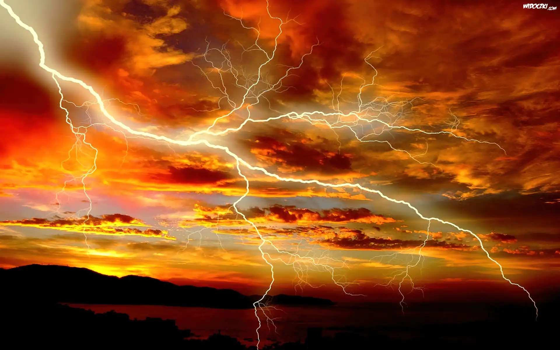 Zdjęcia, Pomarańczowe, Chmury, Piękna, Błyskawica