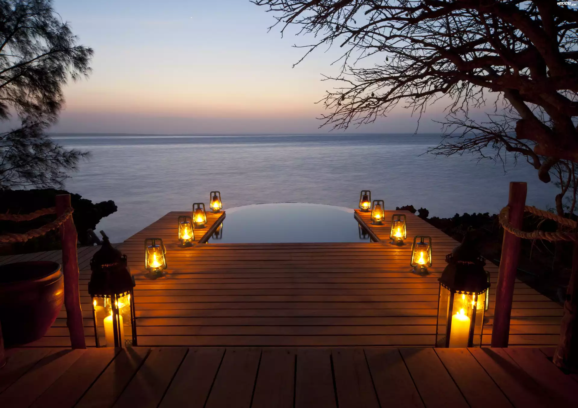 Zdjęcia, Morze, Pomost, Lampy