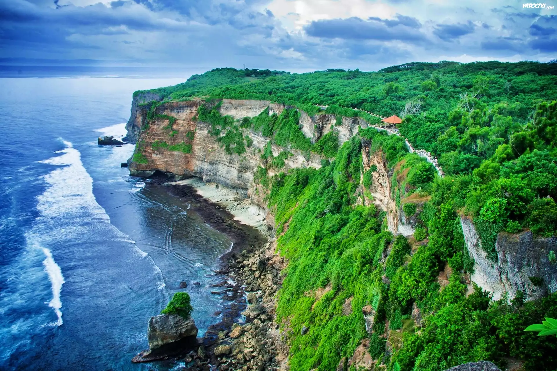 Zdjęcia, Porośnięte, Urwisko, Skalne, Morze