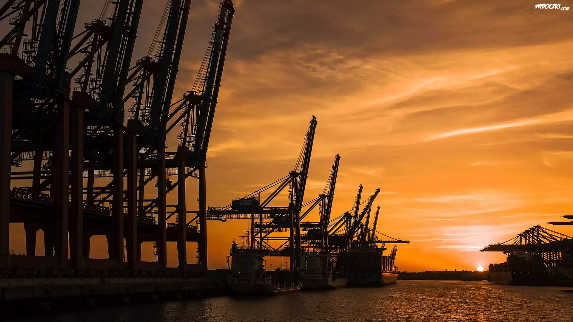Zdjęcia, Port, Dźwigi, Zachód, Słońca