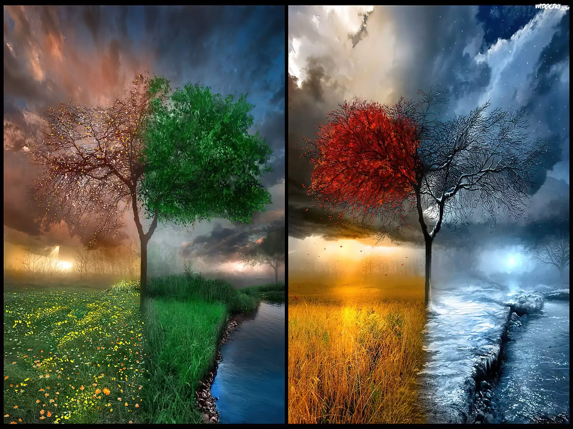Zdjęcia, Cztery, Pory, Roku, Jesień, Lato, Wiosna, Zima