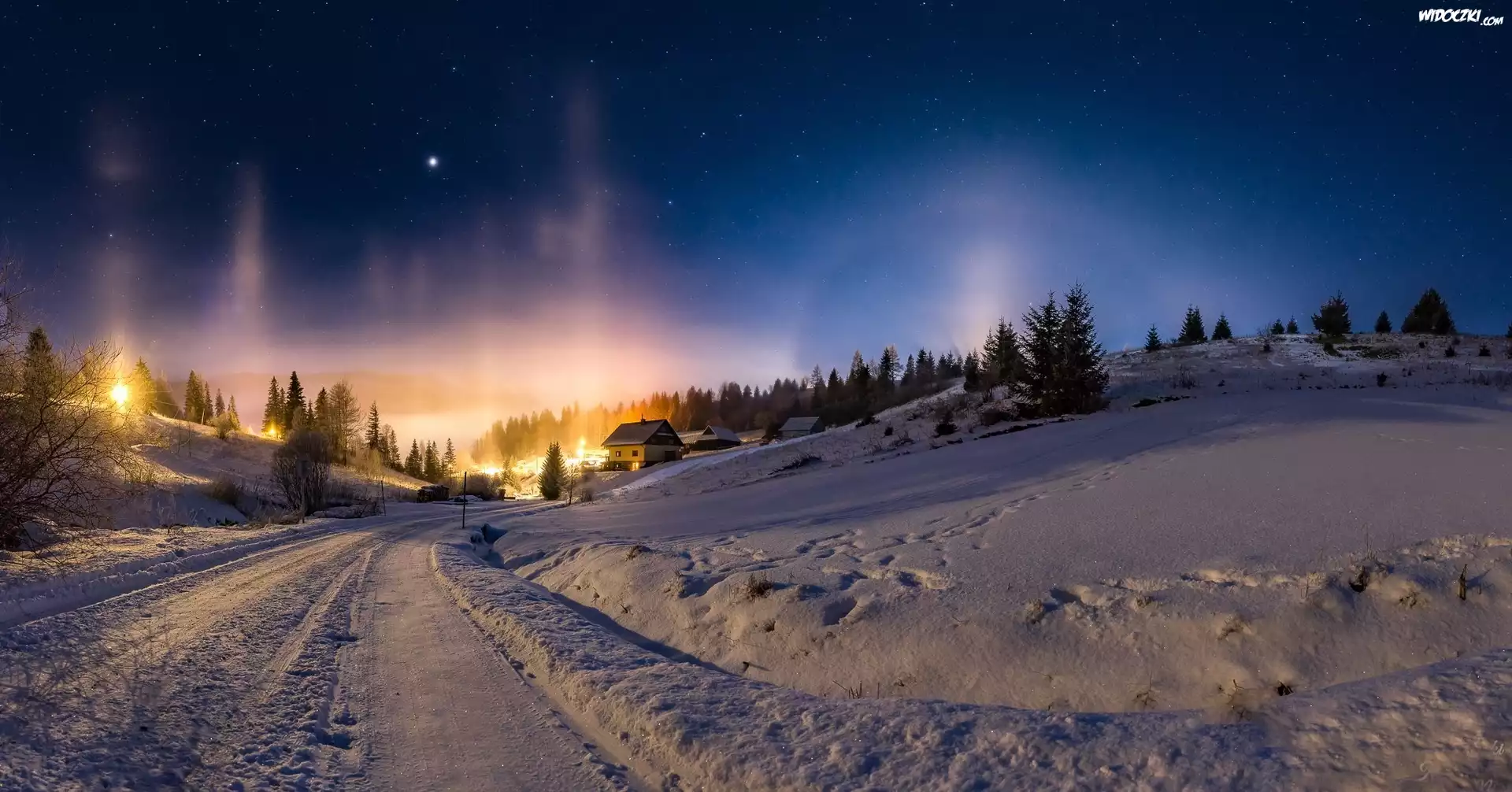 Zdjęcia, Śnieg, Noc, Poświata, Droga