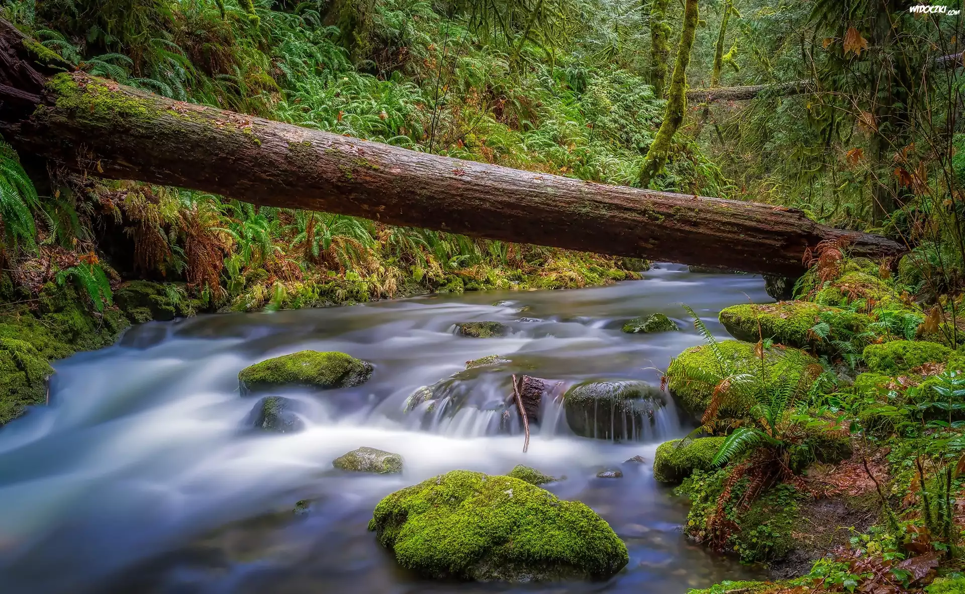 Zdjęcia, Potok, Omszałe, Kamienie, Kłoda, Roślinność