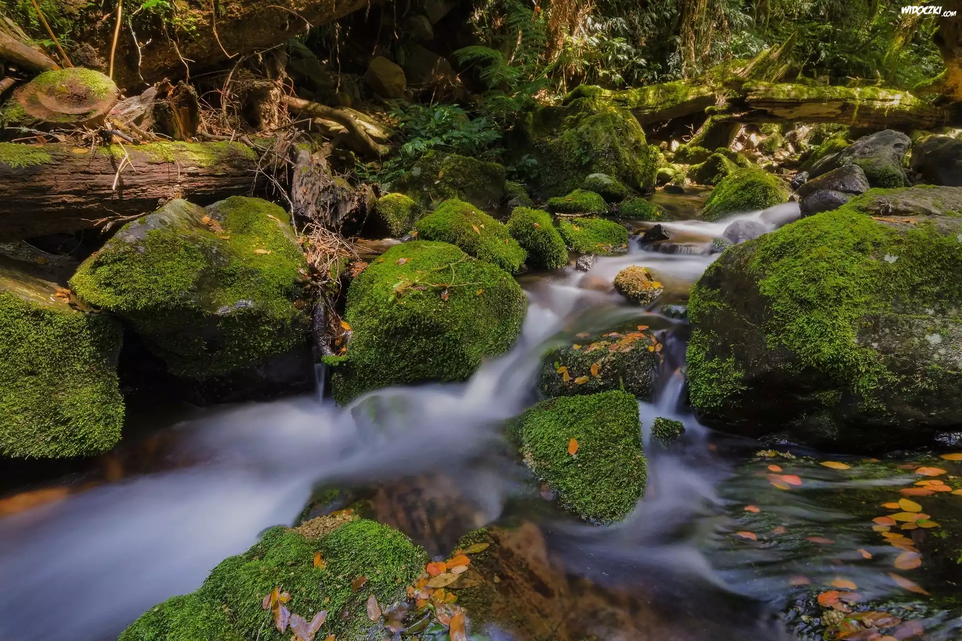 Zdjęcia, Potok, Kamienie, Kłody, Jesień