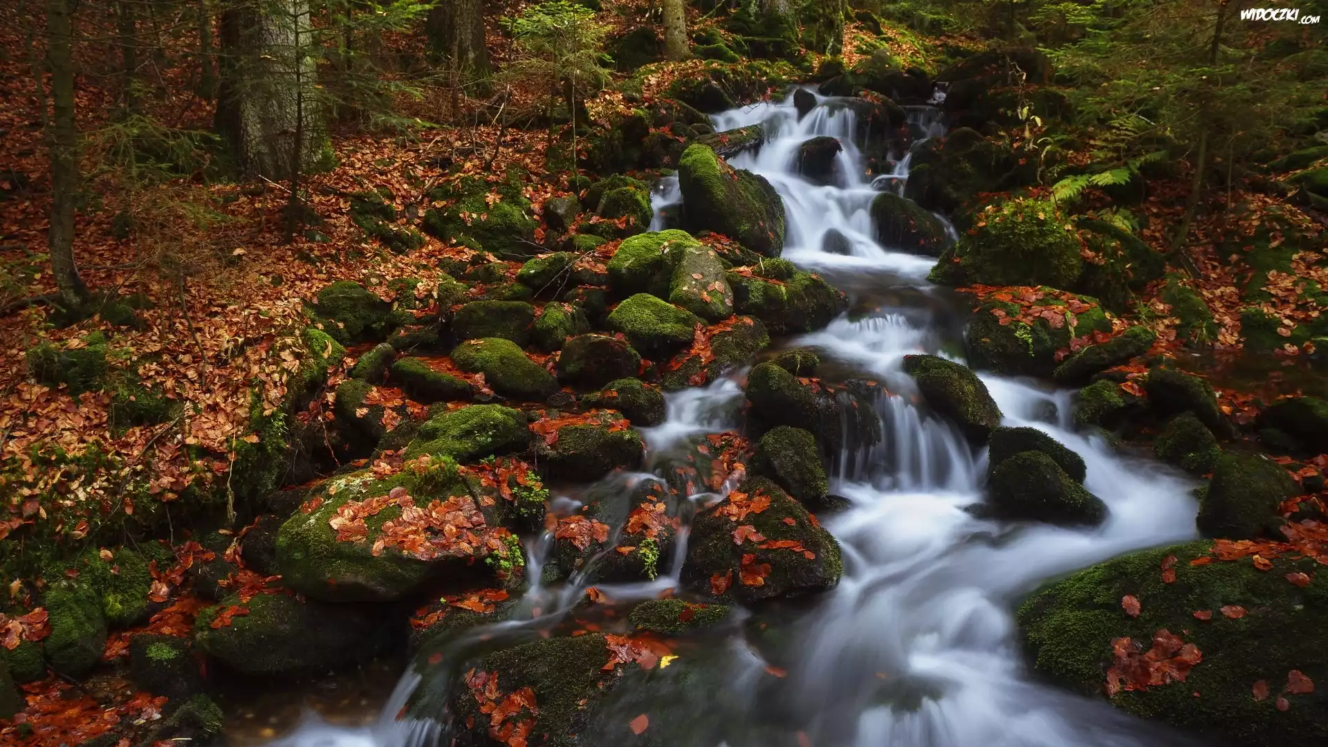 Zdjęcia, Las, Omszone, Kamienie, Potok