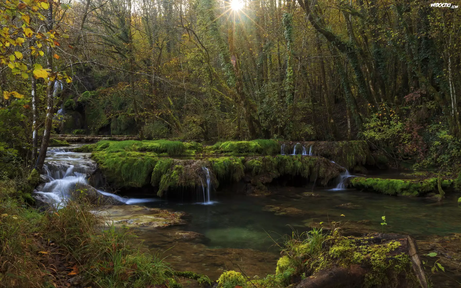 Zdjęcia, Las, Drzewa, Rzeka, Potok