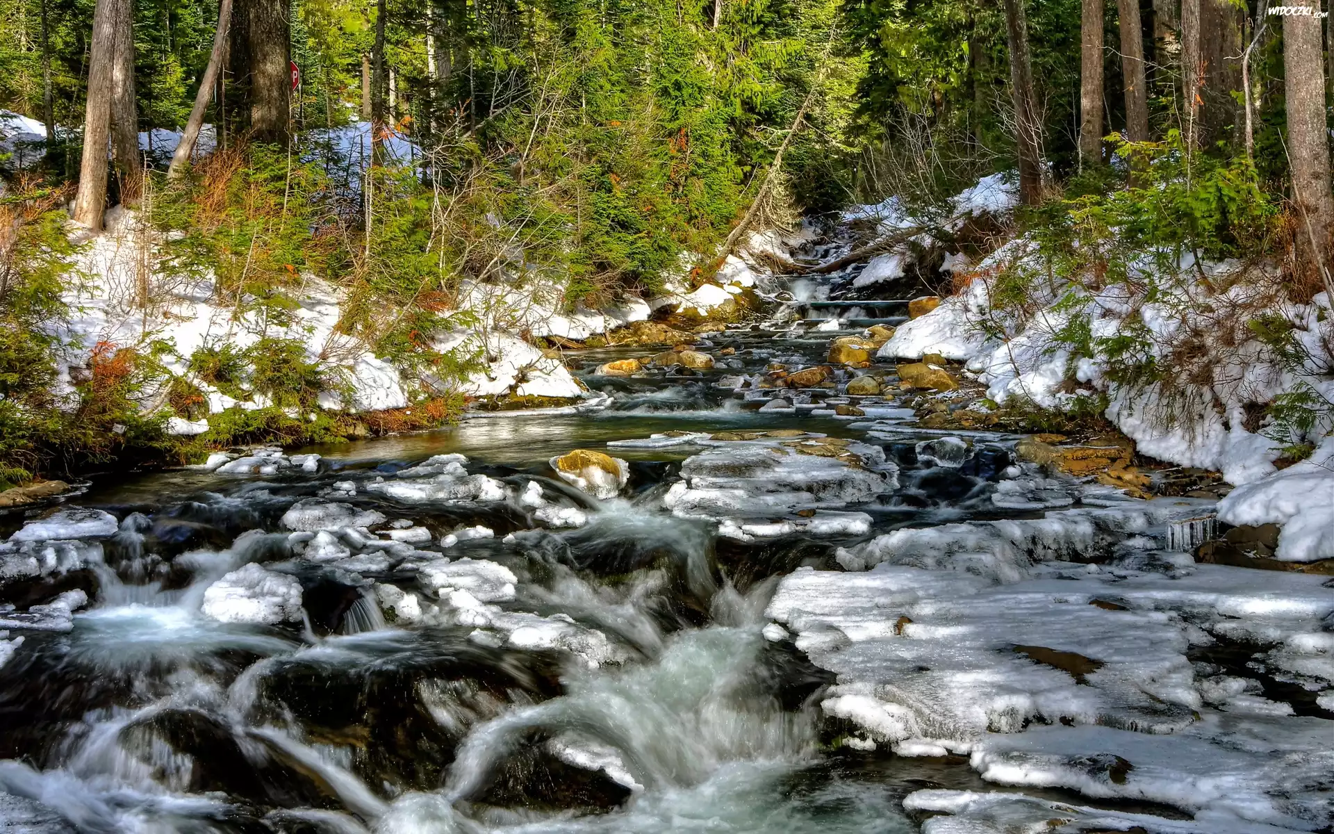Zdjęcia, Potok, Górski, Skały, Kamienie, Las, Zima