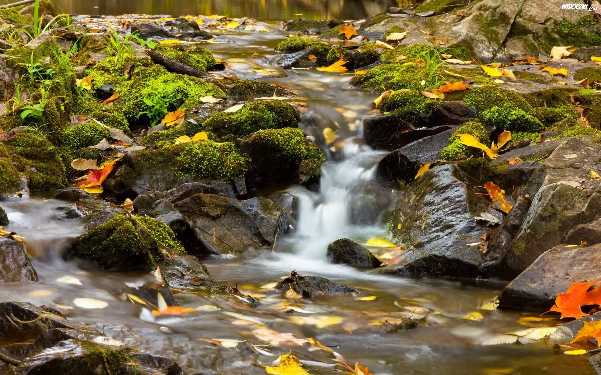 Zdjęcia, Potok, Las, Skały, Mchy, Liście, Jesień