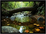 Las, Potok, Powalone, Drzewo, Liście