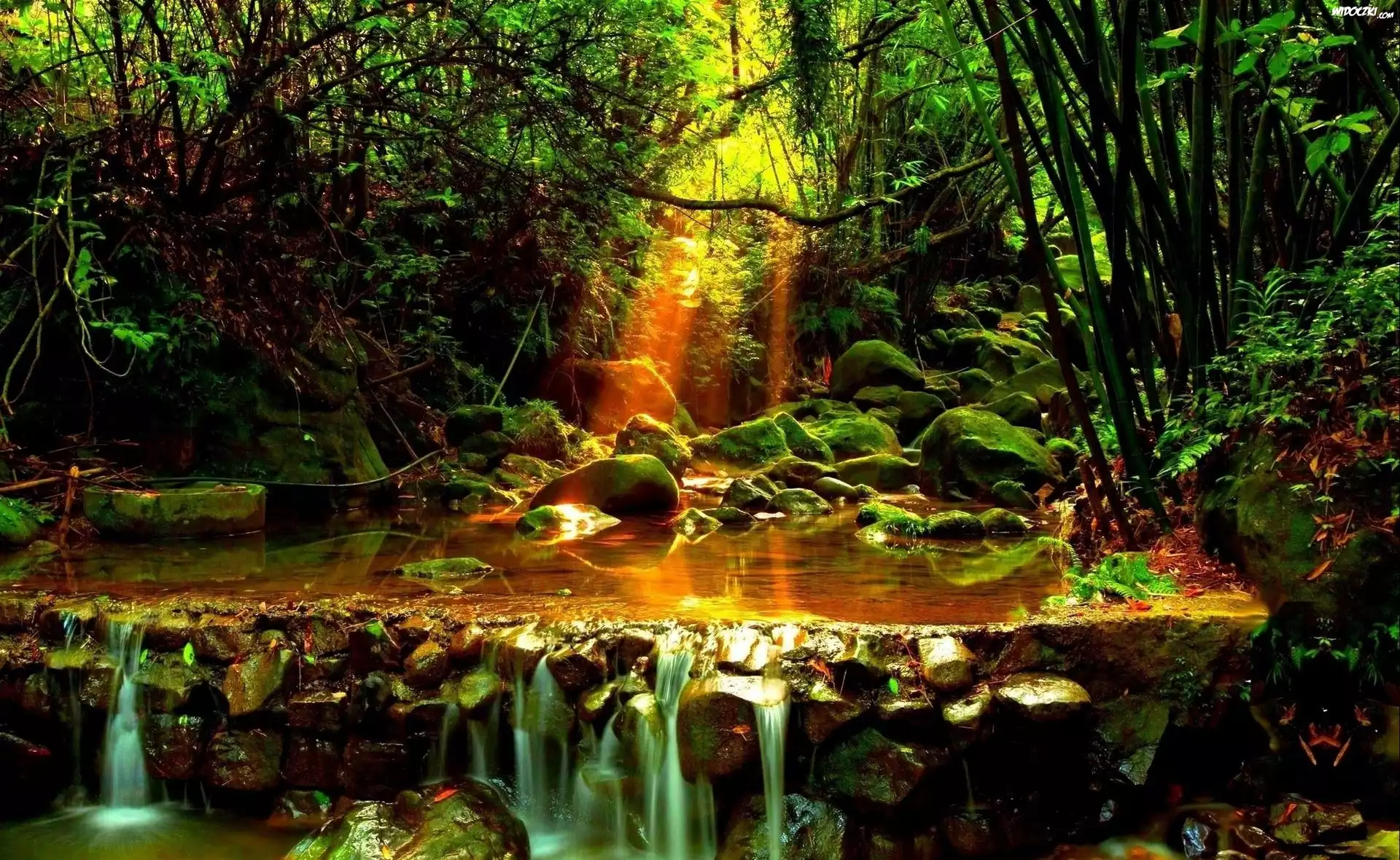Zdjęcia, Potok, Kamienie, Przebijające, Światło