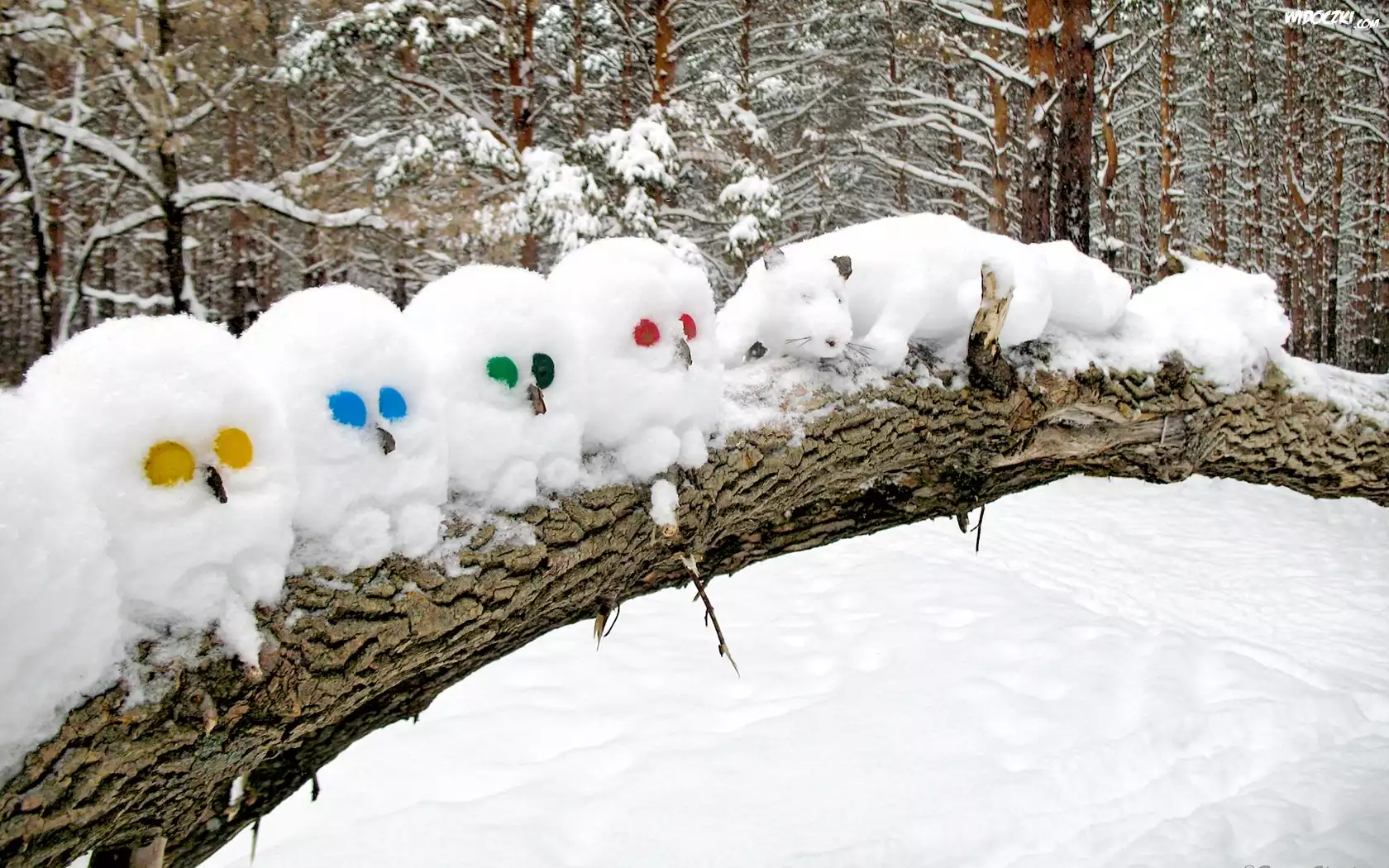 Zdjęcia, Powalone, Drzewo, Figury, Śniegowe, Sowy, Kot