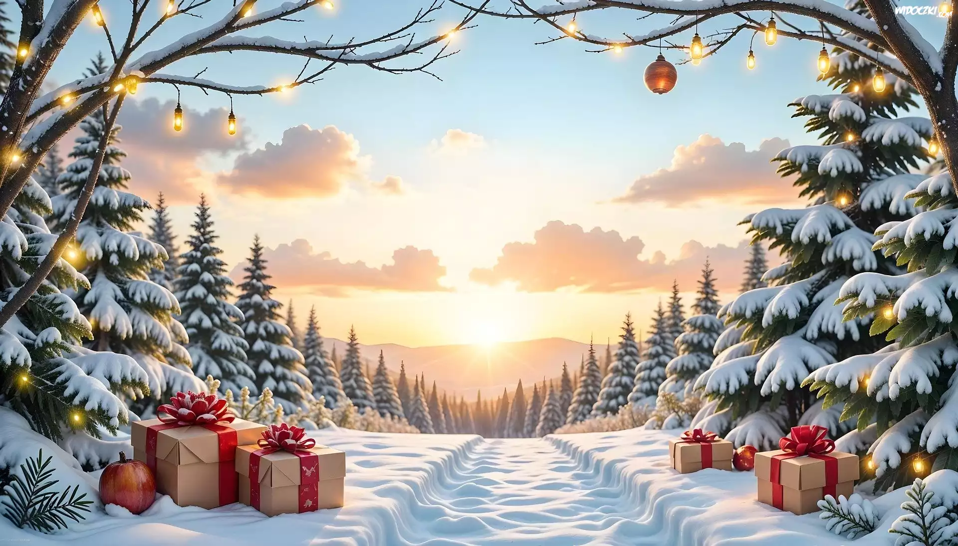 Zdjęcia, Zima, Prezenty, Choinki, Śnieg, Drzewa