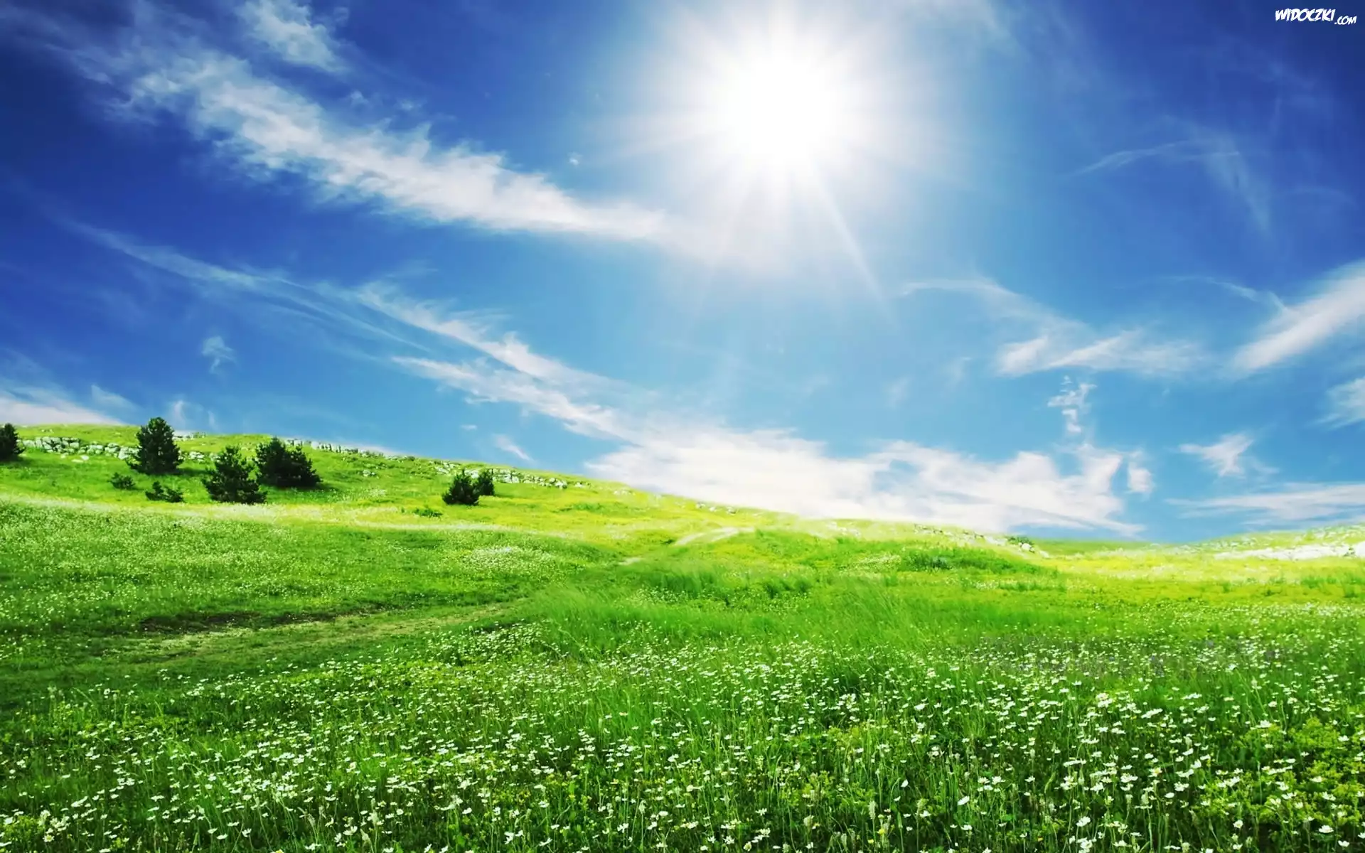Łąki, Chmury, Promienie, Słońca
