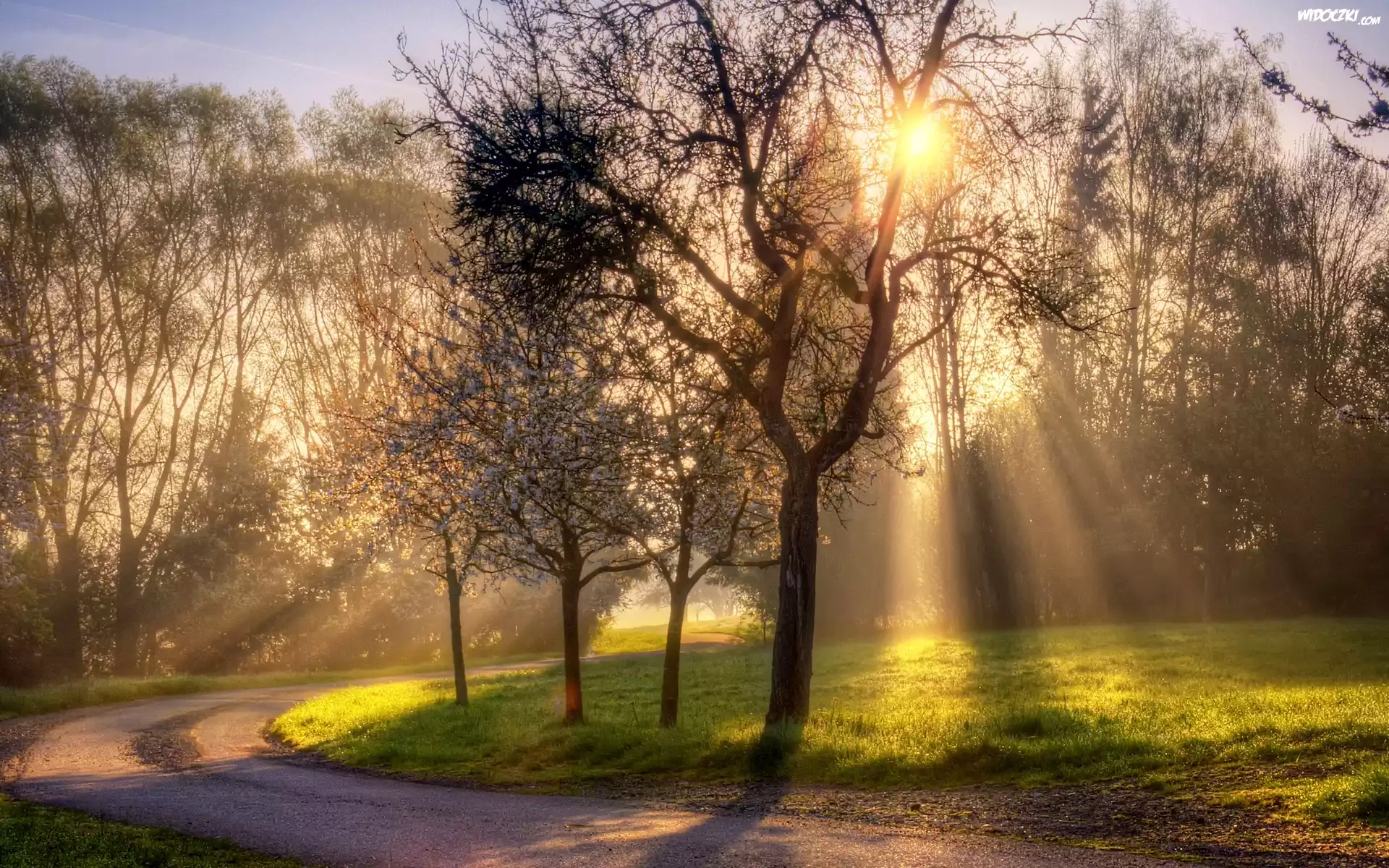 Zdjęcia, Promienie, Słońca, Droga, Drzewa