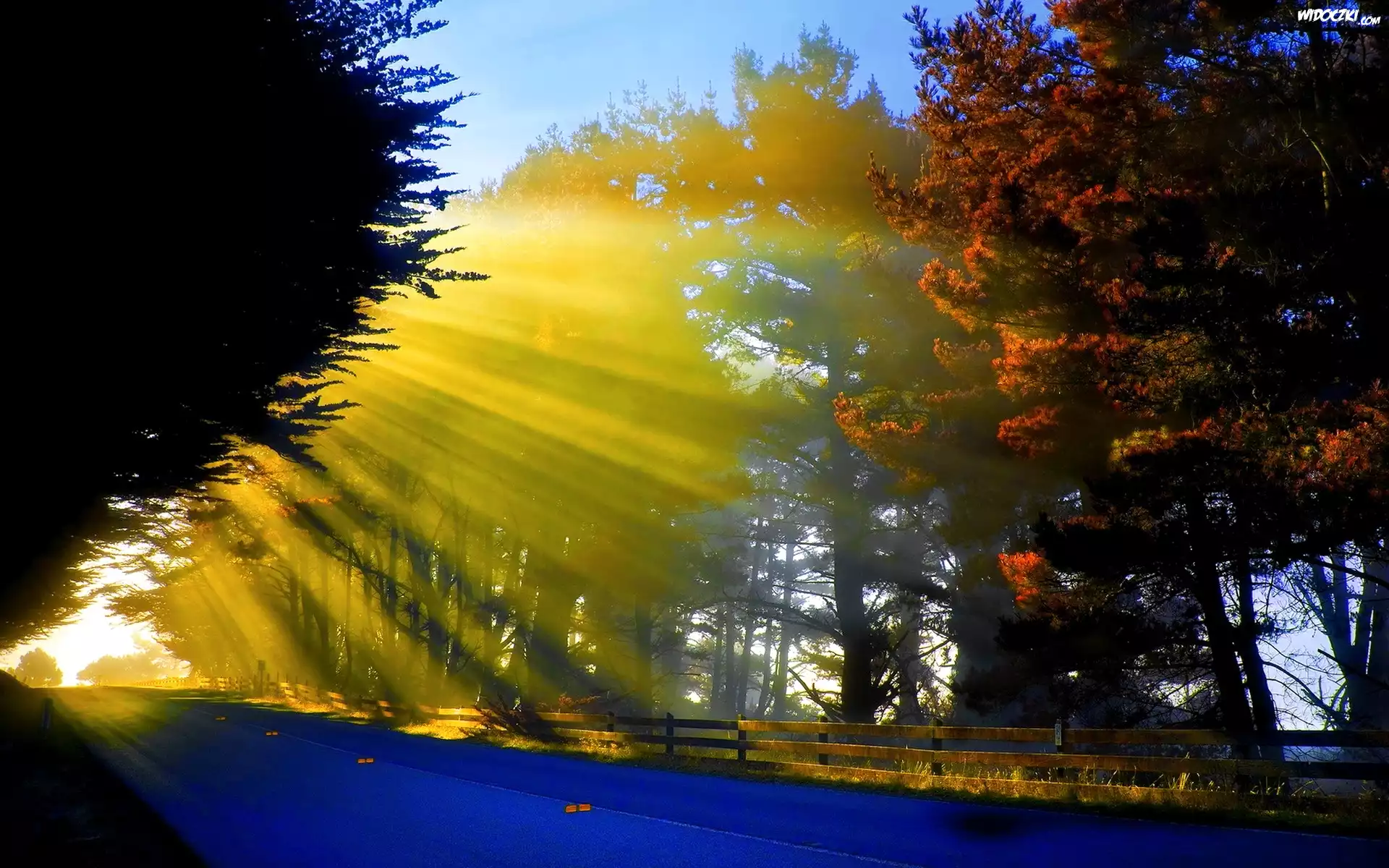 Zdjęcia, Promienie, Słońca, Drzewa, Droga