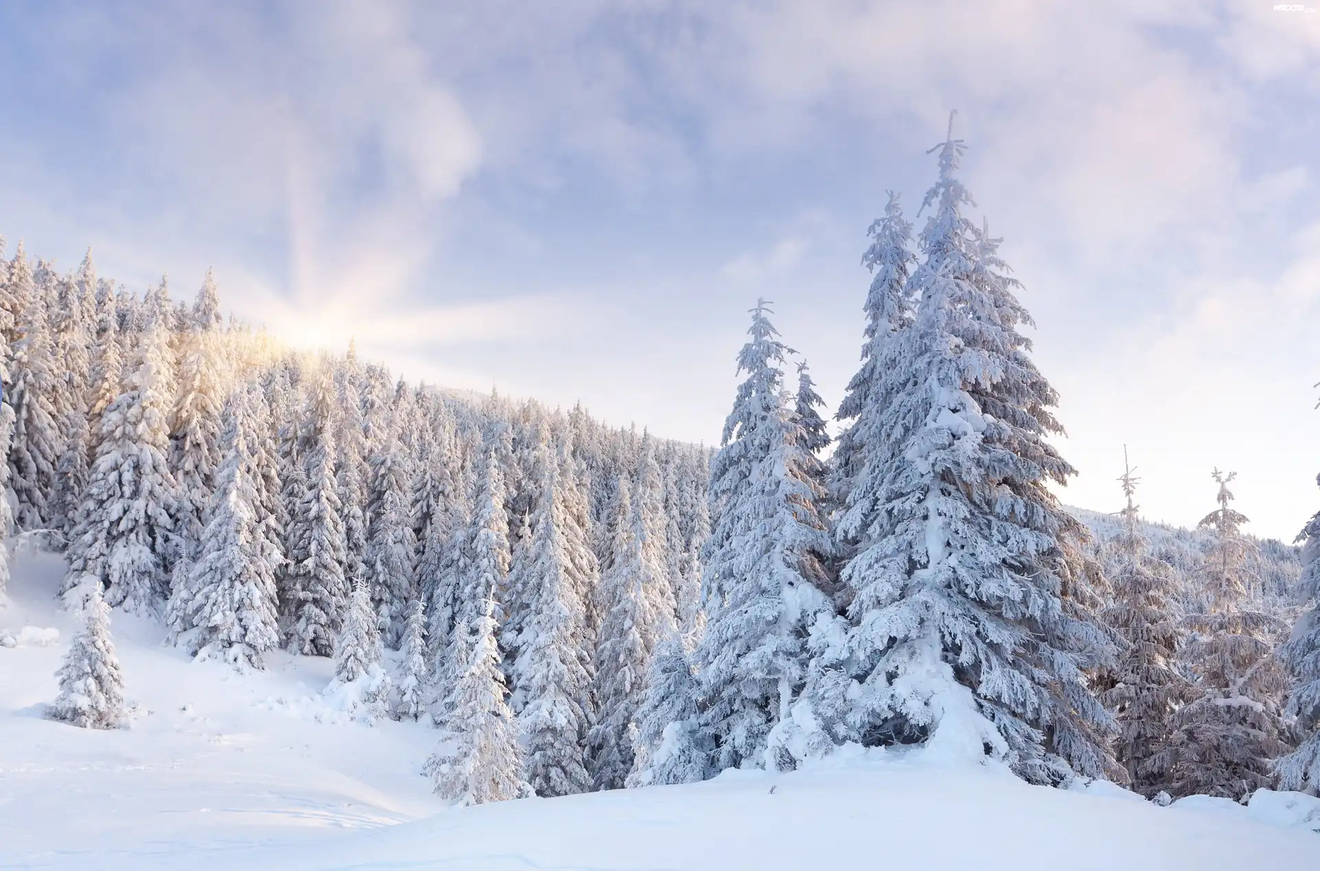 Zdjęcia, Promienie Słońca, Drzewa, Śnieg