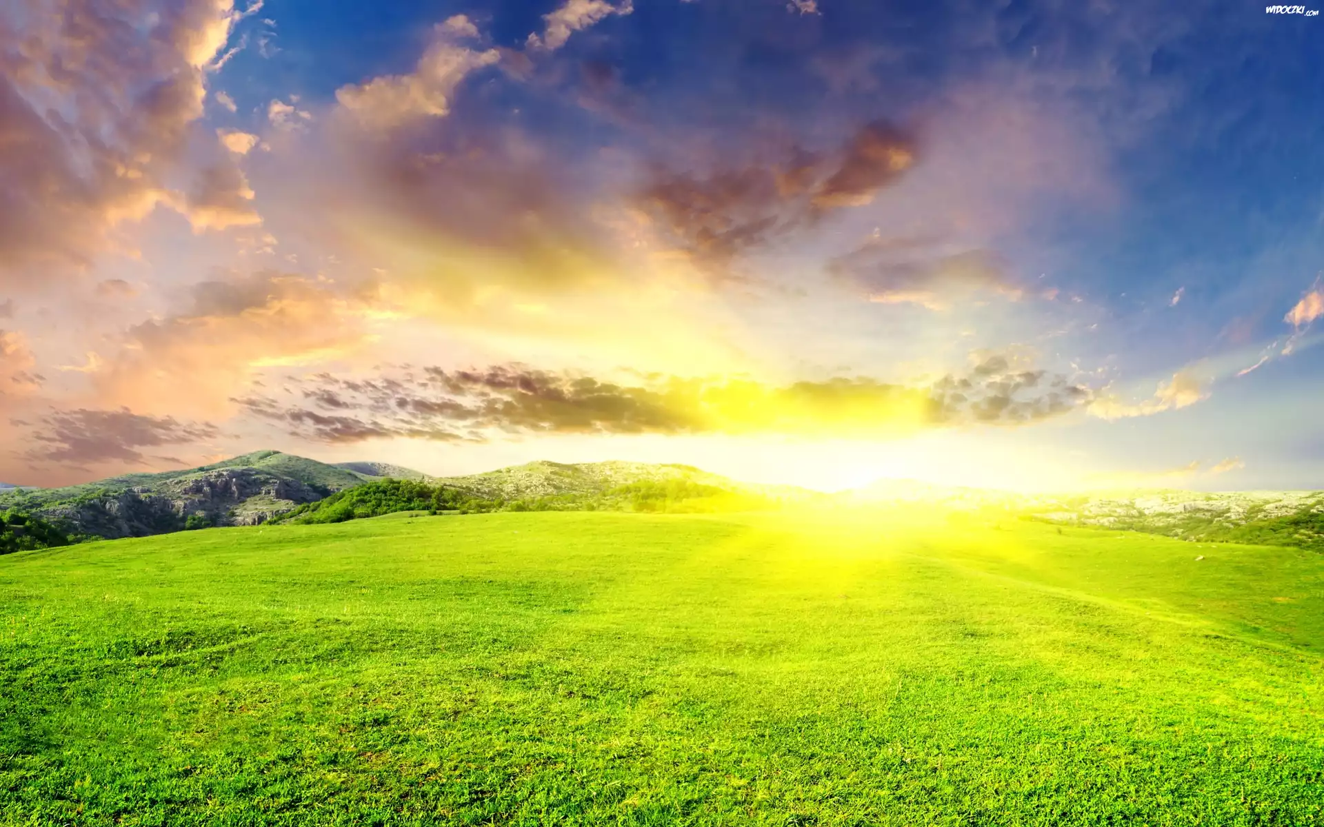 Zdjęcia, Promienie, Słońca, Góry, Łąki
