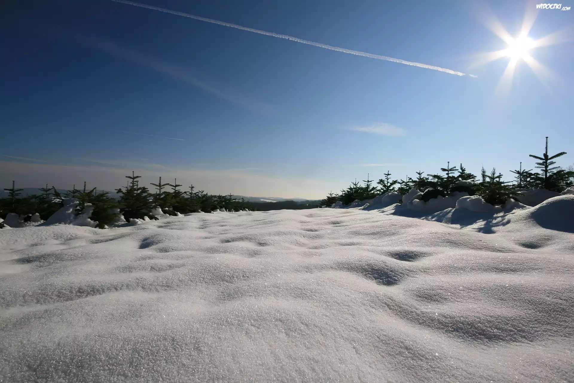 Zdjęcia, Śnieg, Las, Promienie ,Słońca