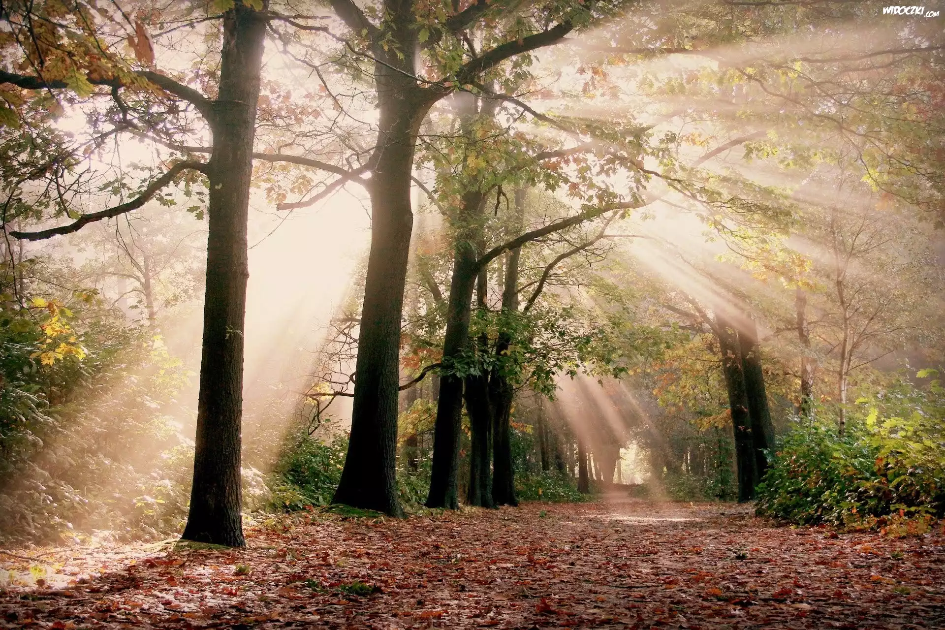 Zdjęcia, Promienie, Słońca, Las, Jesień