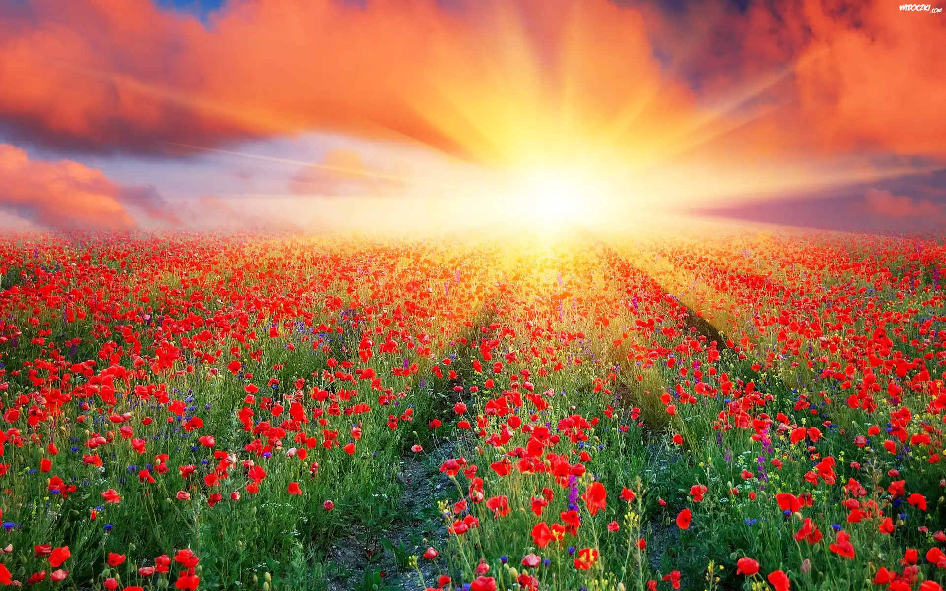 Zdjęcia, Promienie, Słońca, Maki, Pole