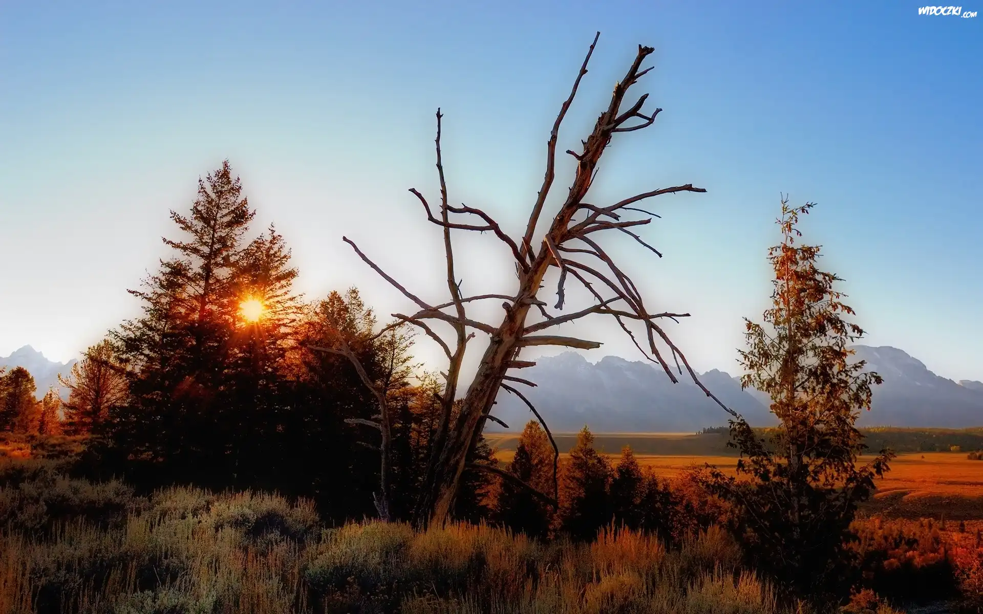 Zdjęcia, Promienie, Słońca, Niebo, Drzewa