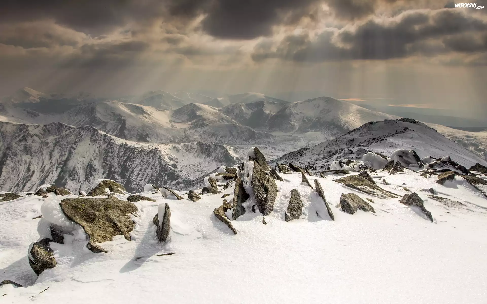 Zdjęcia, Promienie, Słońca, Góry, Śnieg, Zima