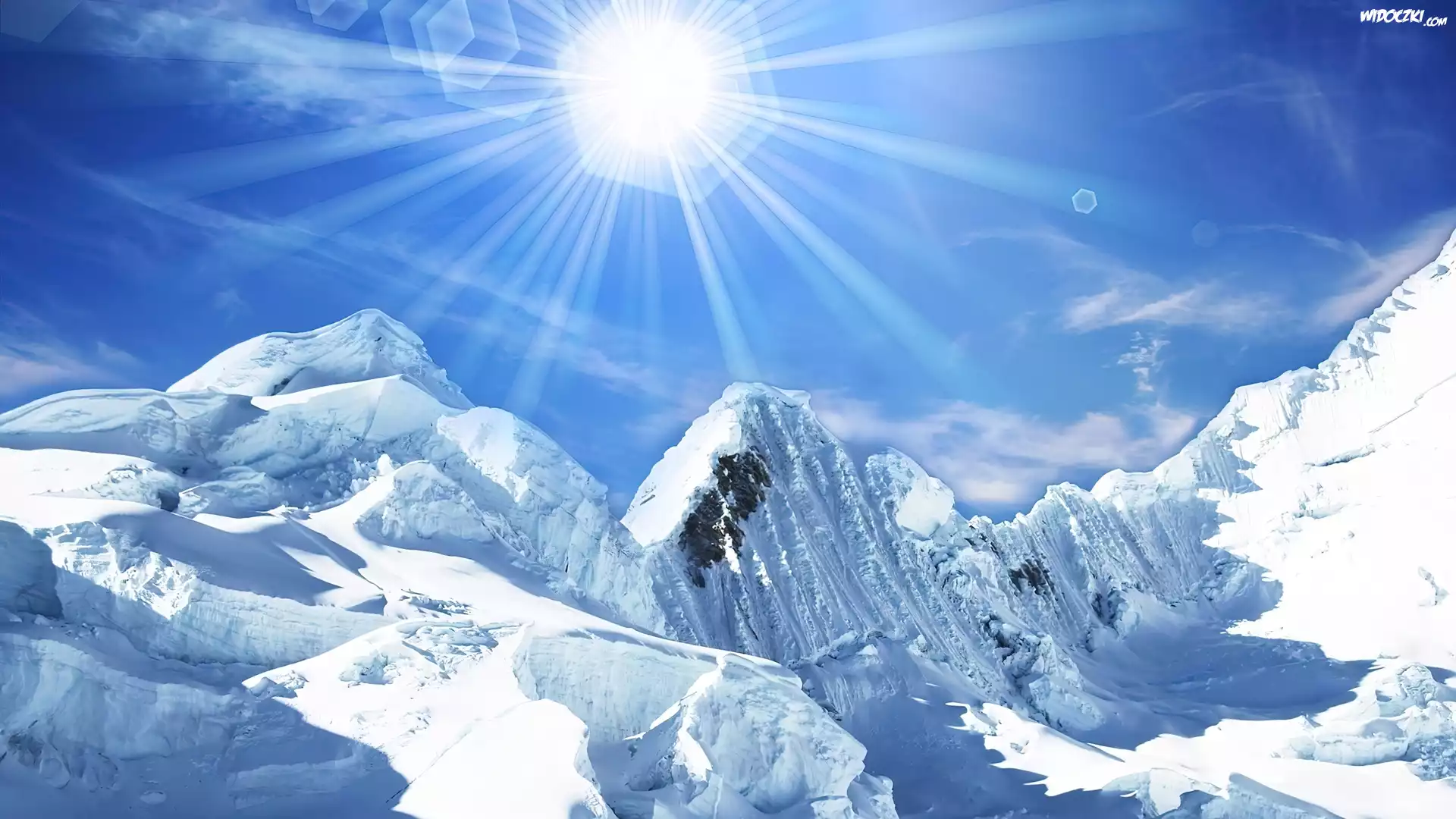 Zdjęcia, Promienie, Słońca, Góry, Śnieg, Zima
