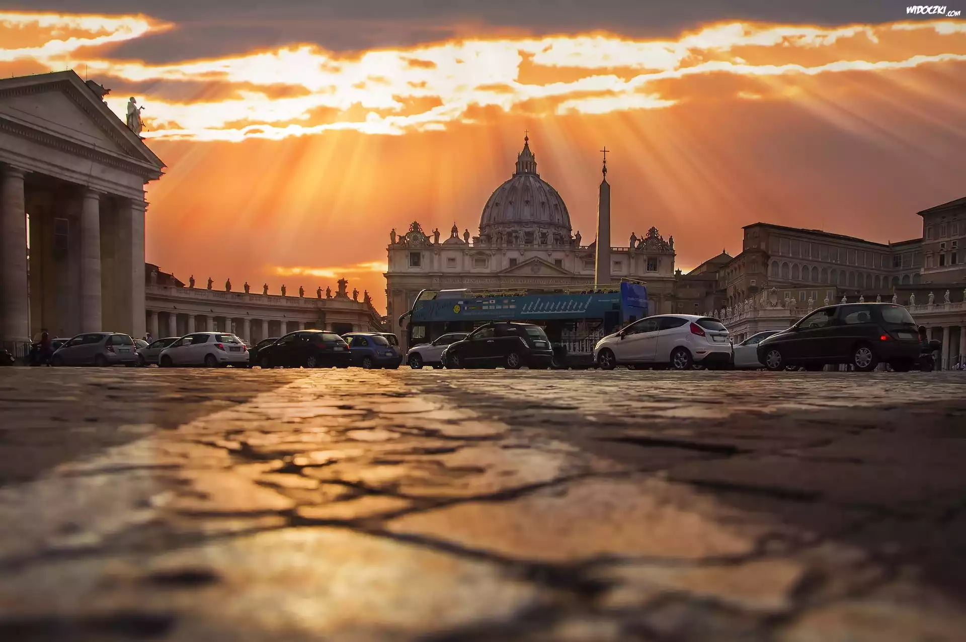 Zdjęcia, Promienie, Słońca, Samochody, Budynki