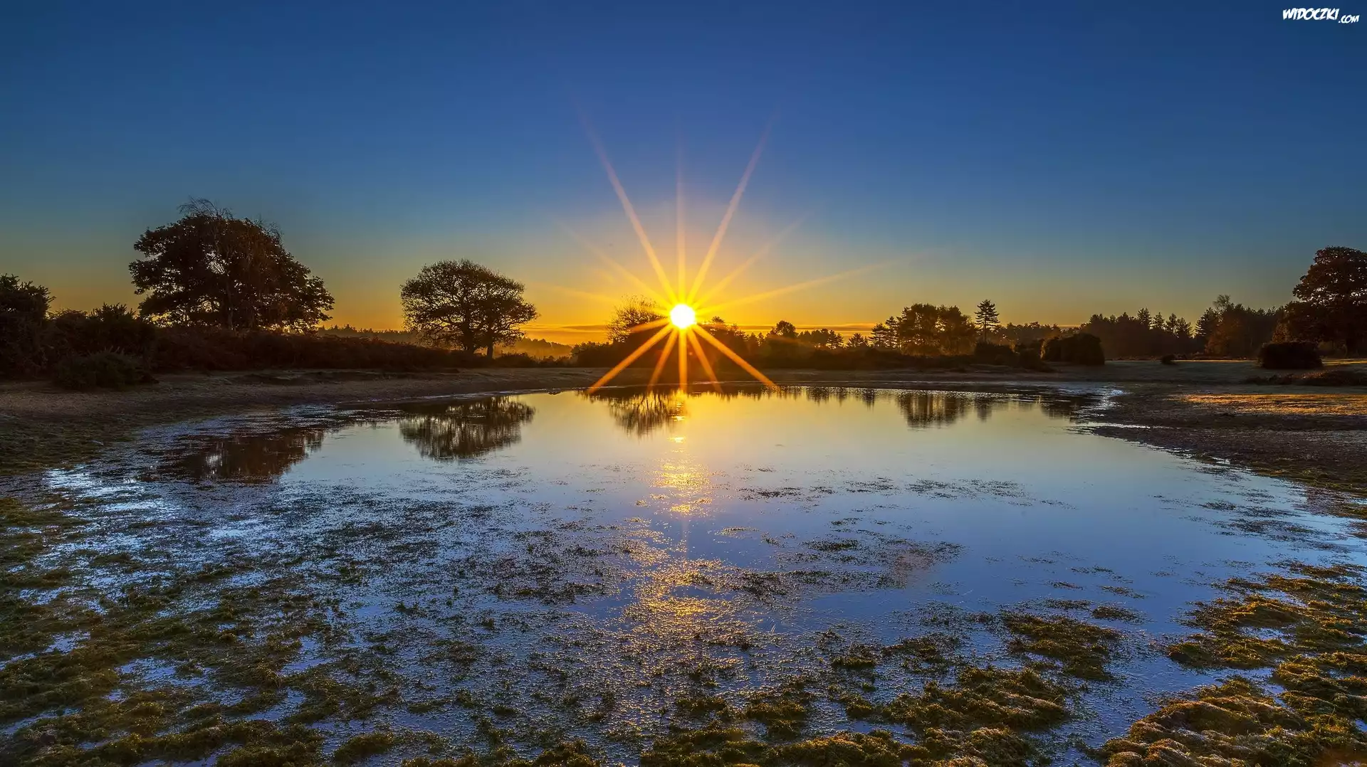 Promienie słońca, Staw, Drzewa
