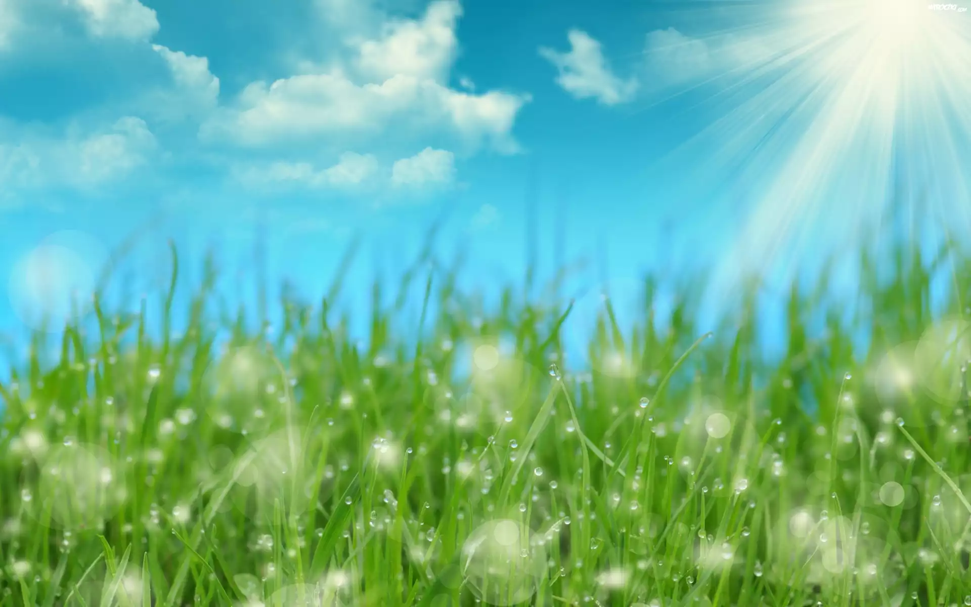 Zdjęcia, Promienie, Słońca, Trawa, Rosa