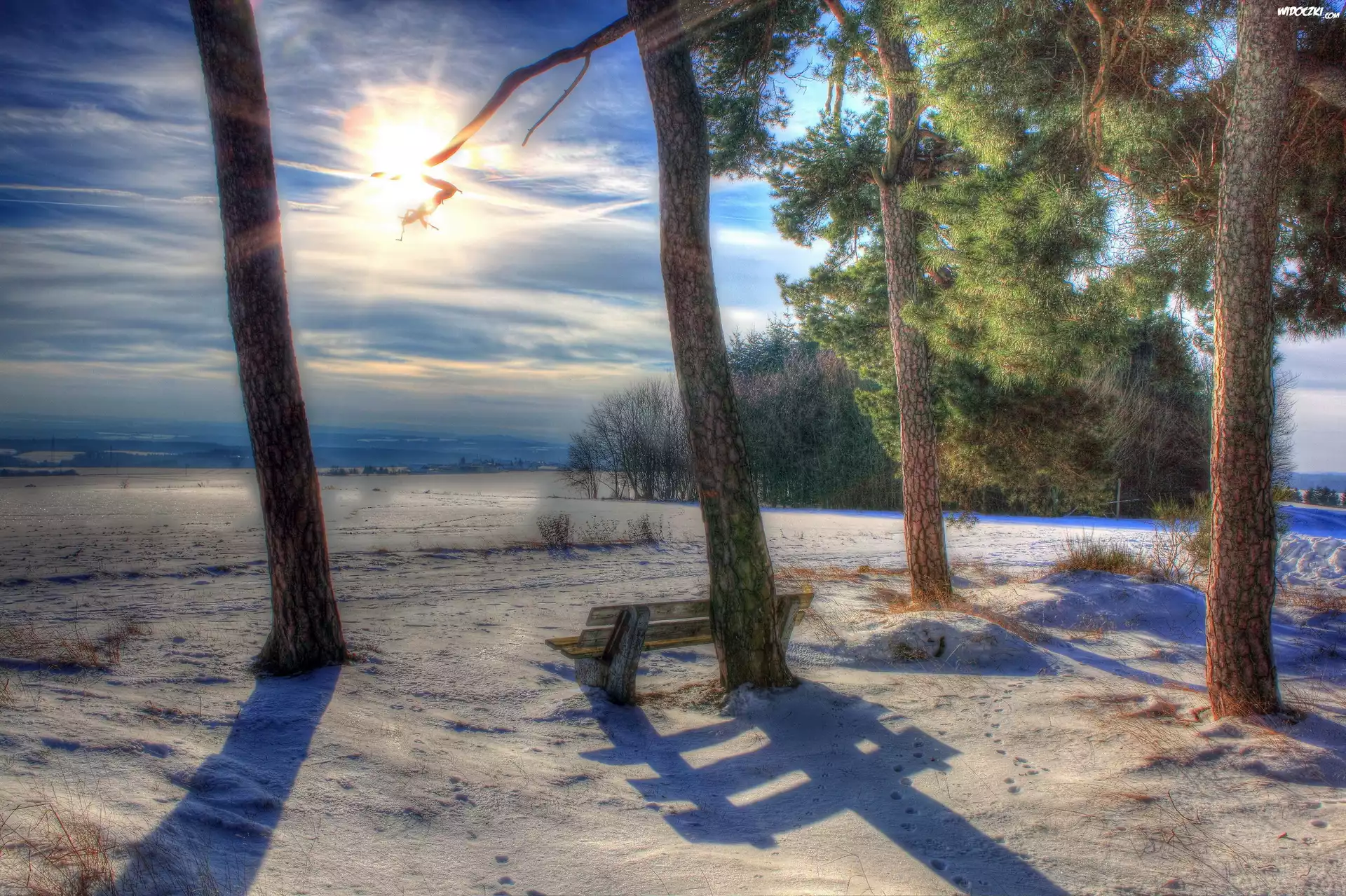 Zdjęcia, Przebijające, Światło, Drzewa, Zima