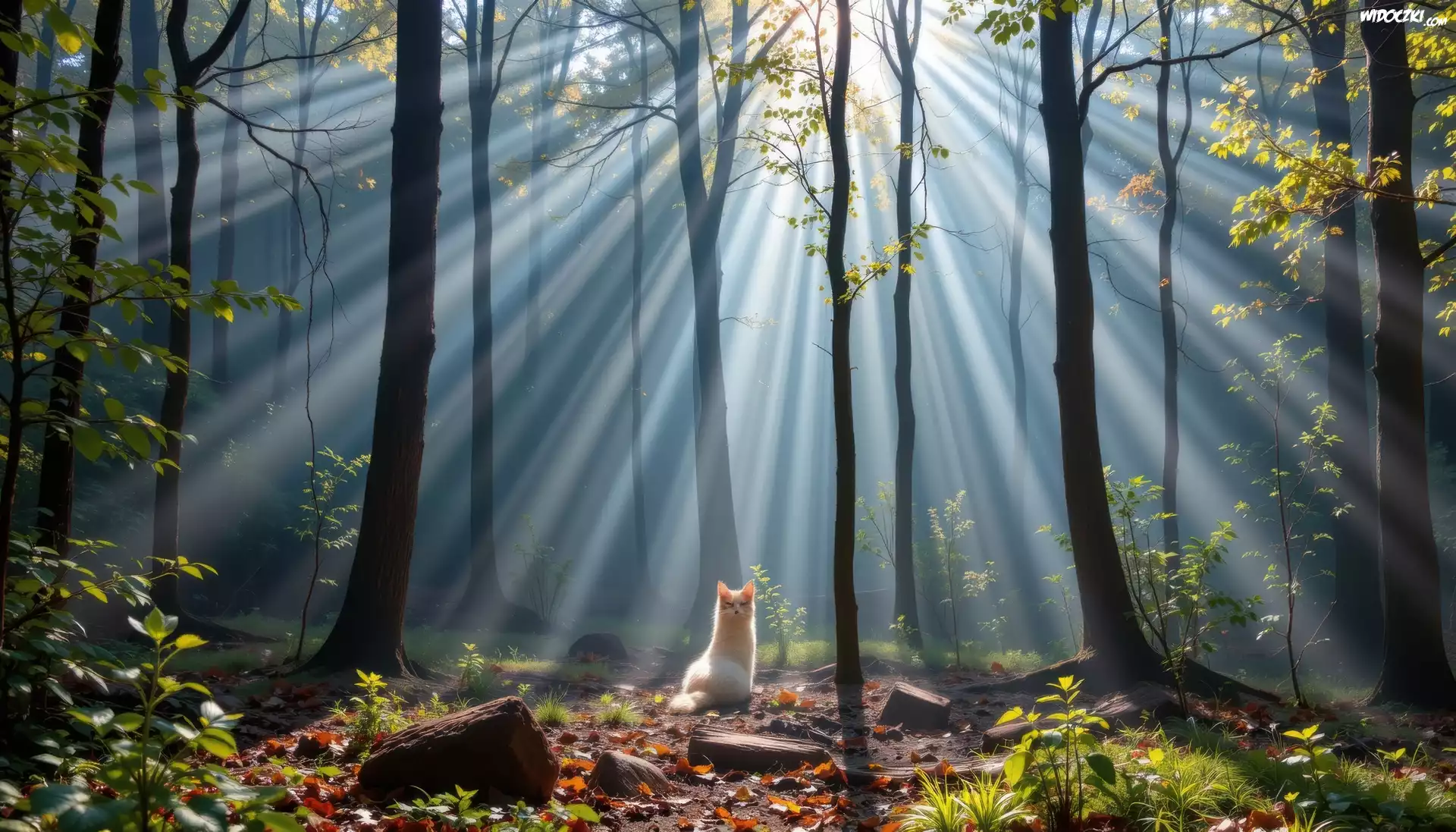 Las, Drzewa, Lis, Przebijające światło, Grafika AI