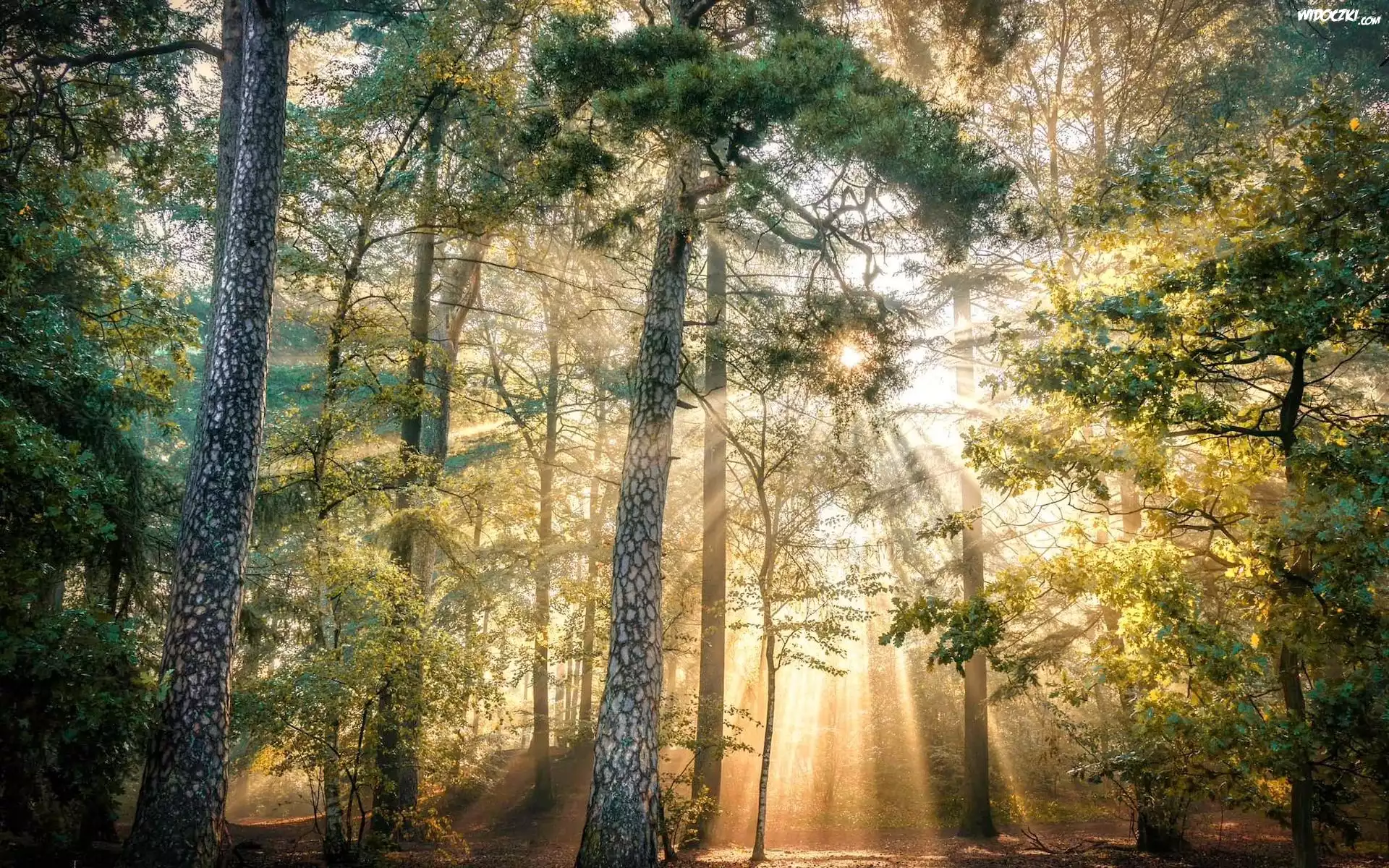 Zdjęcia, Las, Przebijające światło, Słońce, Drzewa