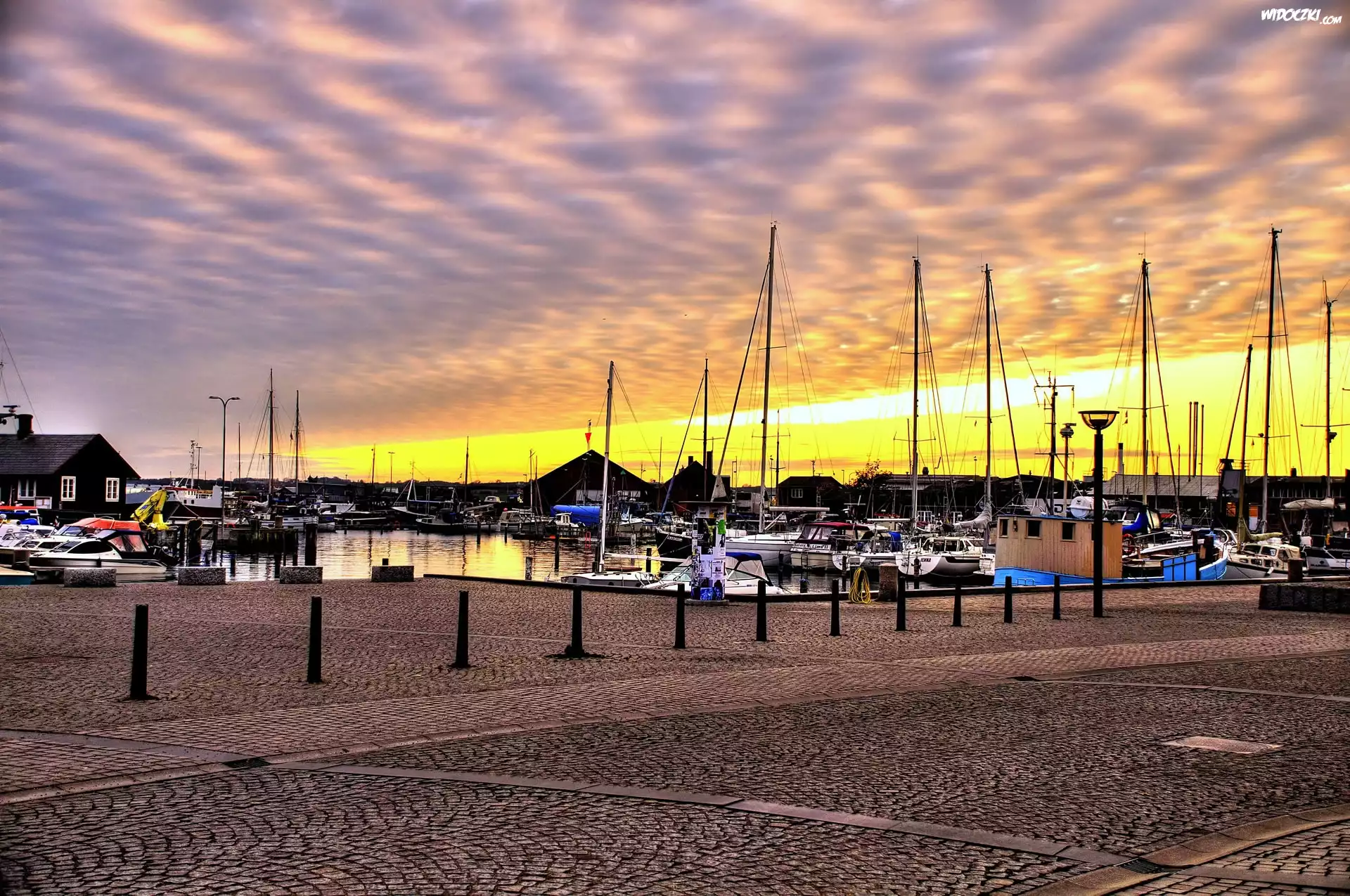 Zdjęcia, Świt, Chmury, Przystań, Łodzie