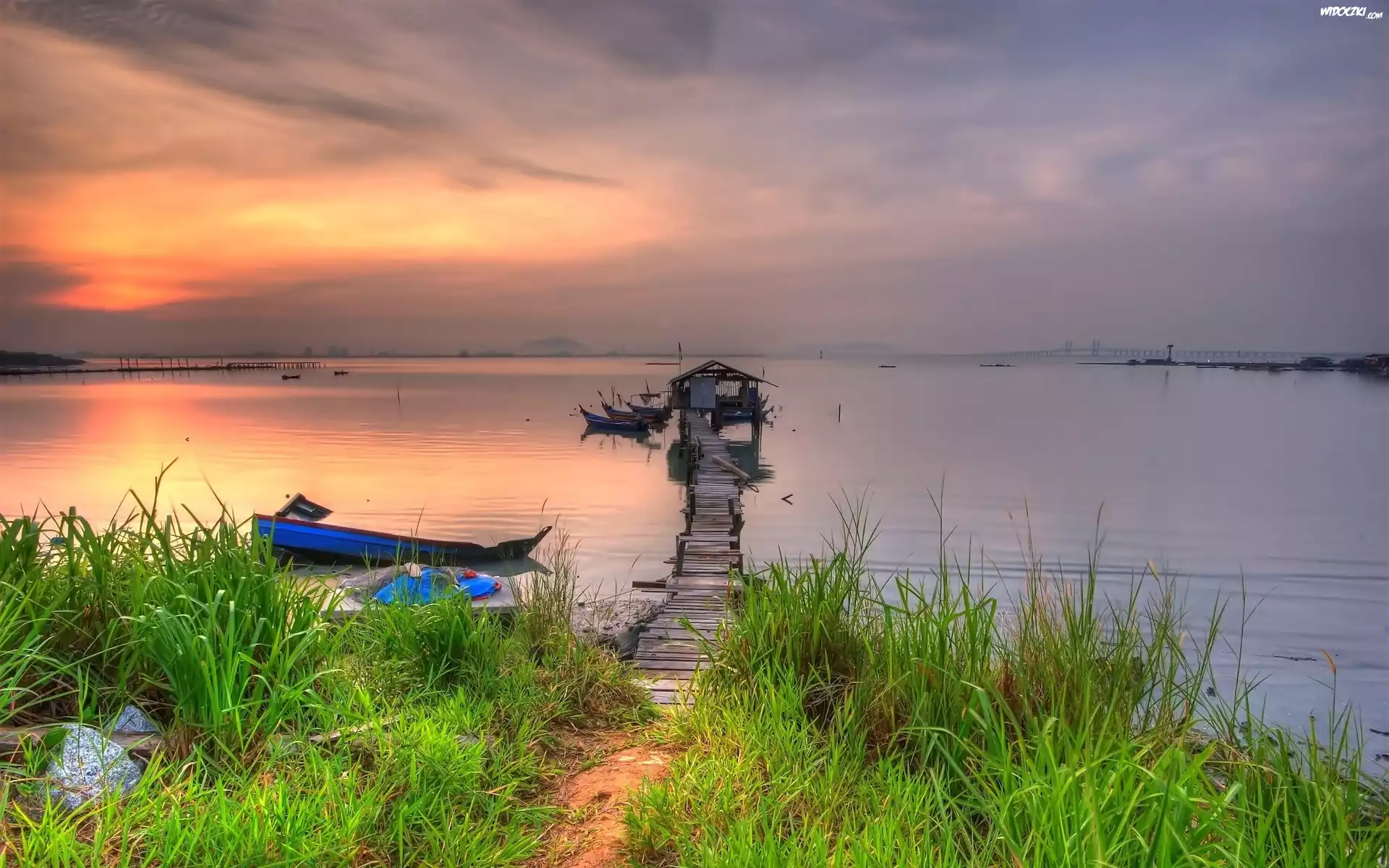 Zdjęcia, Przystań, Mostek, Łódź, Jezioro