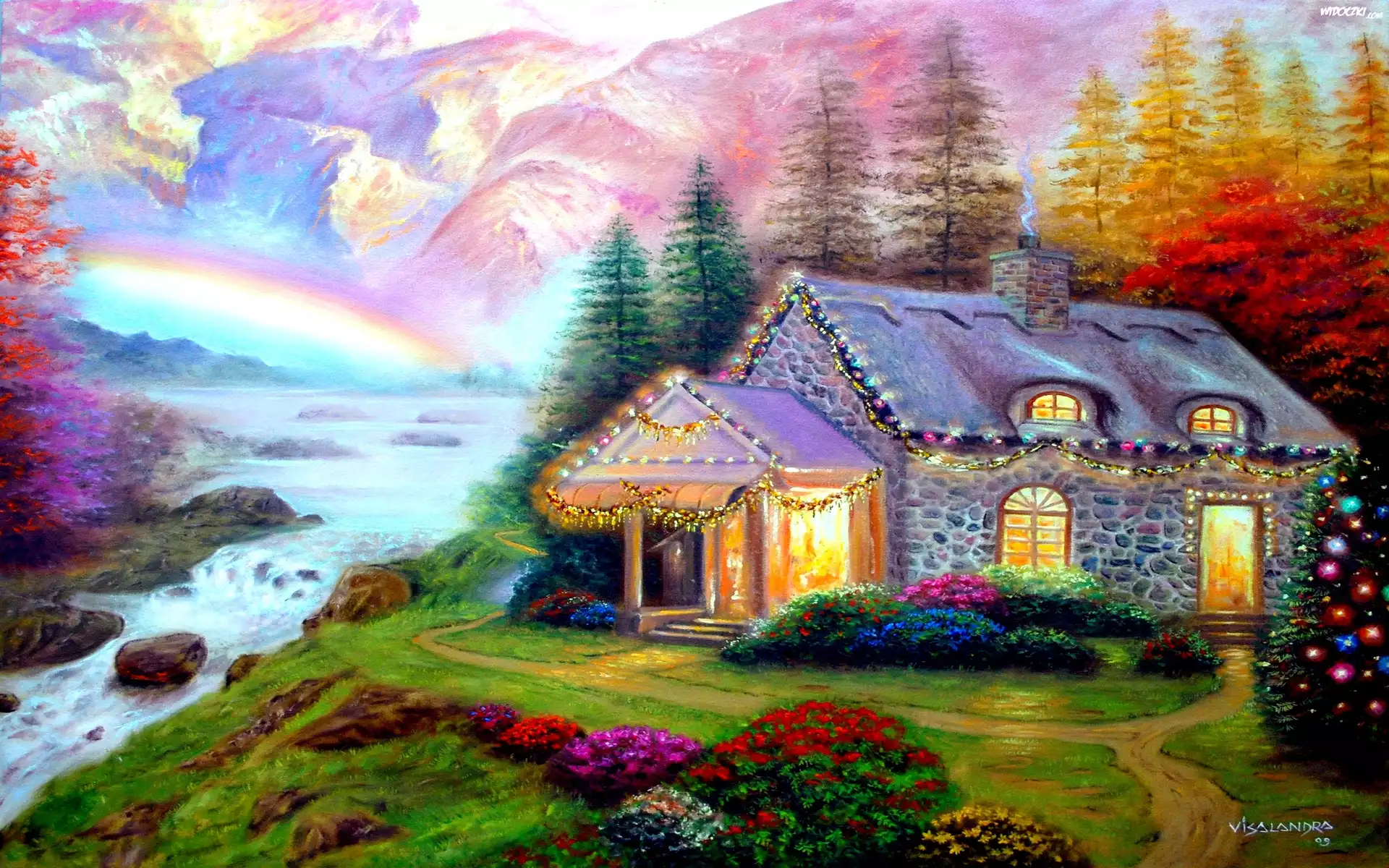 Przystrojony, Dom, Rzeka, Boże, Narodzenie