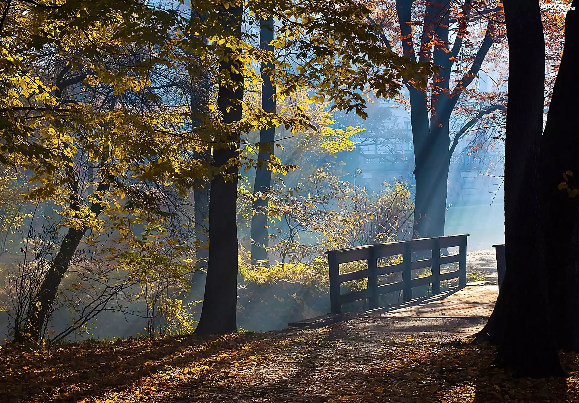 Pszczyna, Par, Zamkowy, Mostek, Przebijające, Światło